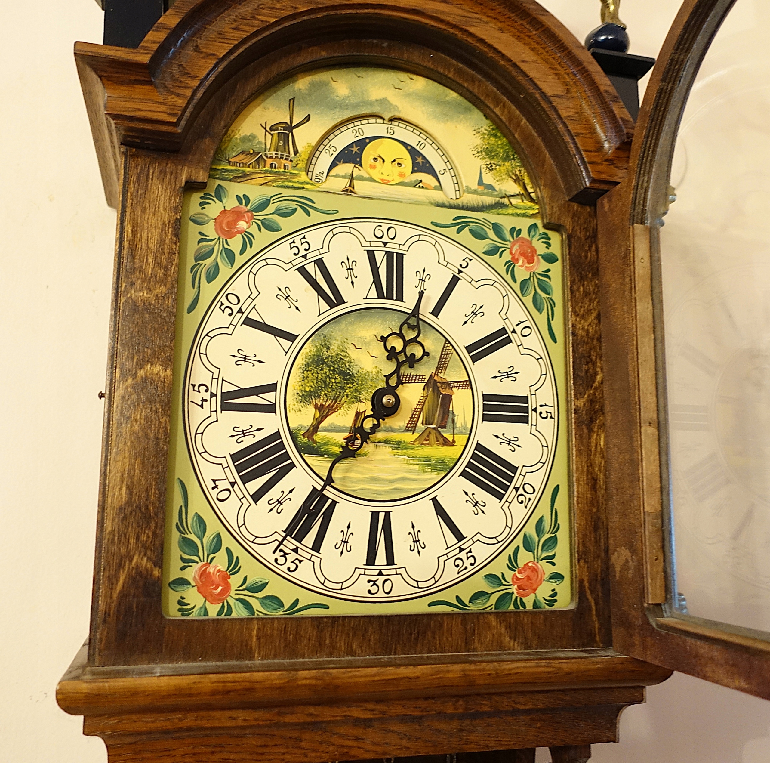 Piękny, wielki ,zegar fryzyjski odważnikowy Wuba z fazami księżyca 110cm.