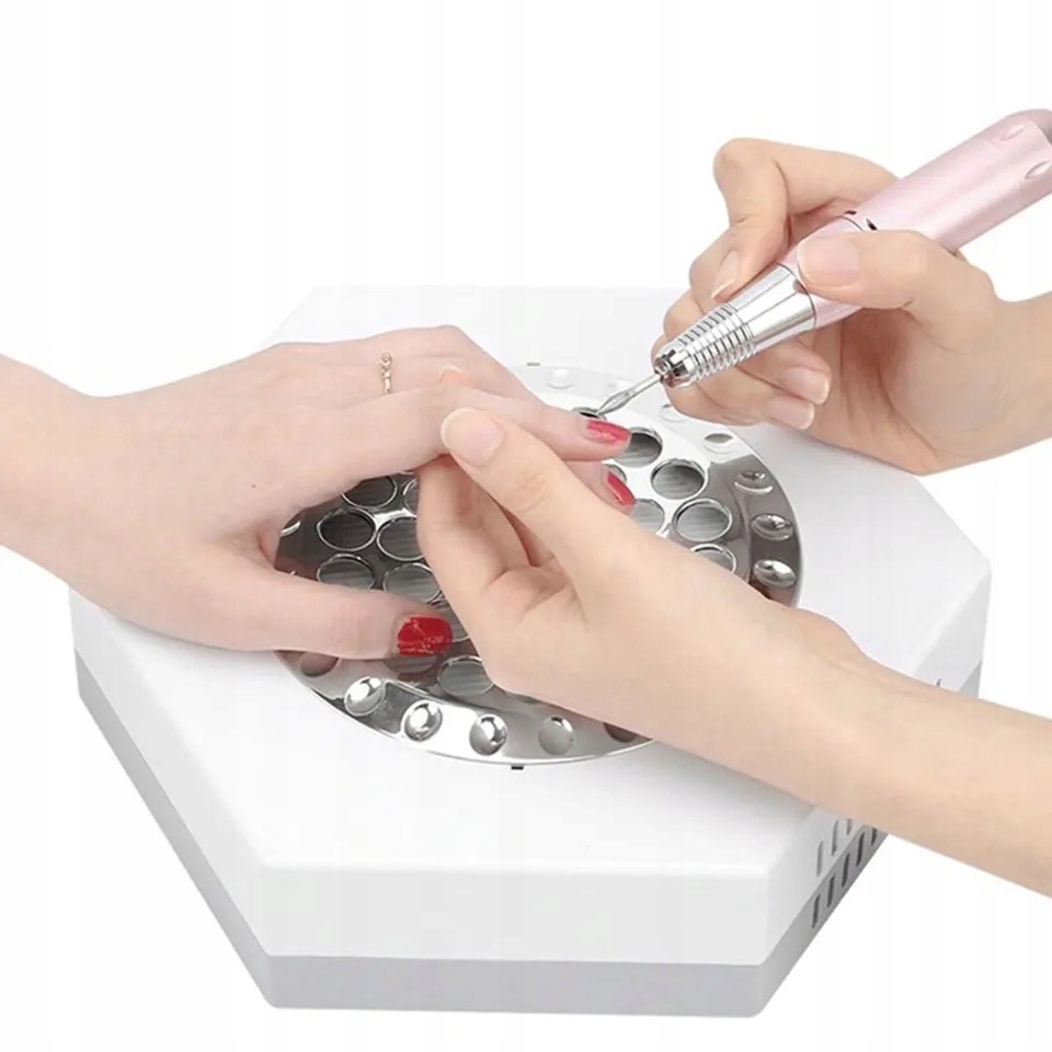 Очень прост в использовании, что оценят люди, которые не занимаются укладкой ногтей ежедневно, а образующаяся пыль будет внутри устройства, а не на вашем столе.