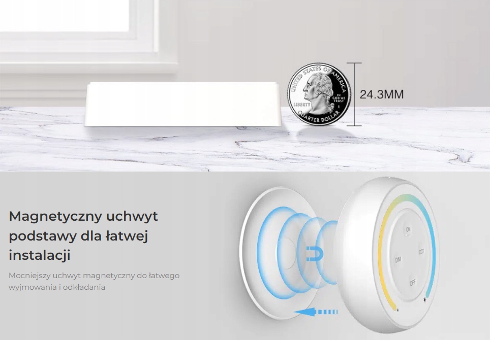 - Магнитная ручка: позволяет легко установить дистанционное управление на стене, что обеспечивает удобный доступ к управлению освещением. и отключение света: обеспечивает быстрое управление основными функциями освещения.