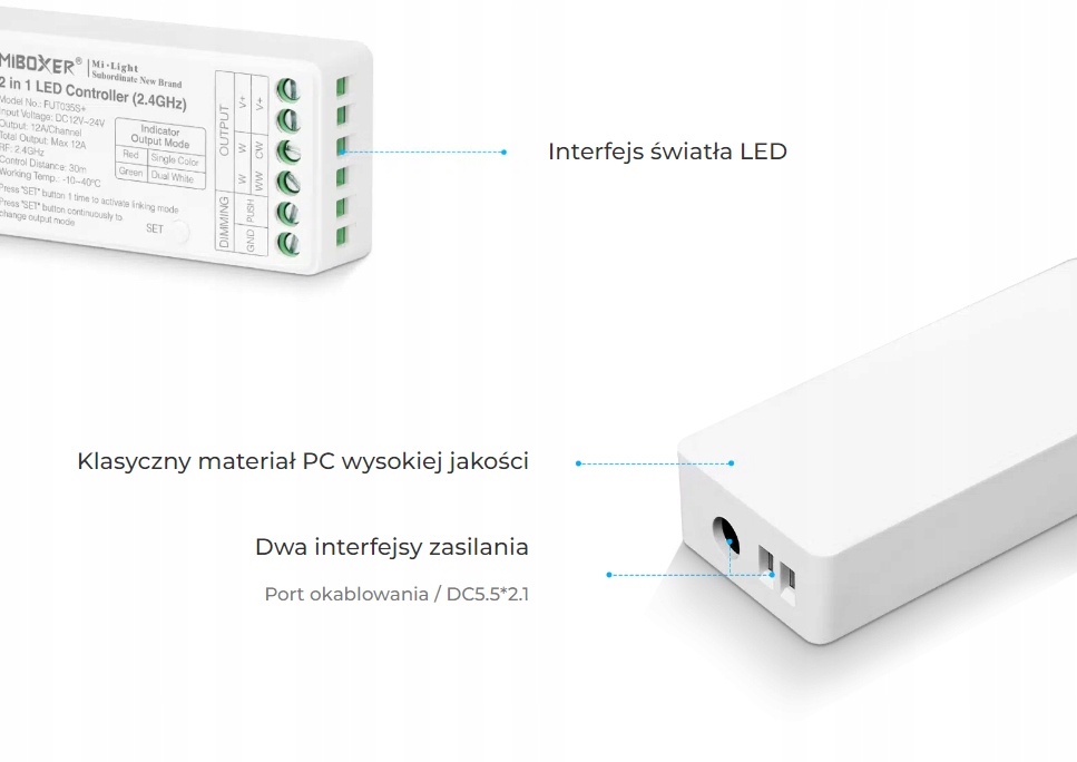 Пилот + 2W1 Светодиодный контроллер Mono/CCT 12V-24VDC 12A FUT035SA + Miboxer