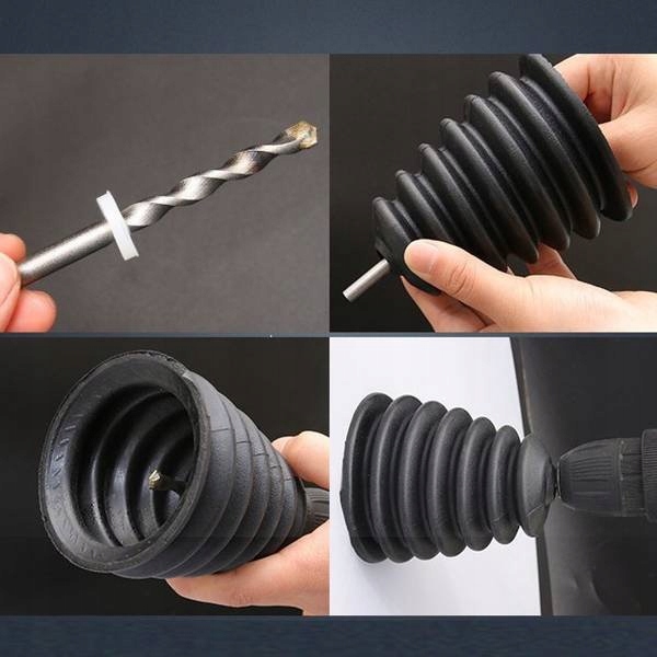 - Насадка для дрели/отвертки предотвращает попадание пыли и грязи во время сверления.
