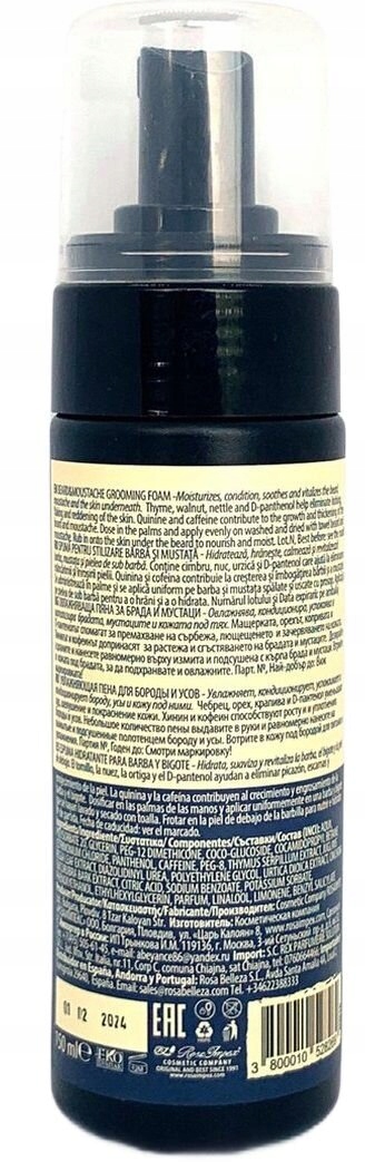 Фирменный мусс MENS MASTER MM2826, емкость 150 мл, благодаря которому вы сможете не только увлажнить бороду и усы, но также успокоить и питать кожу. > Благотворное действие оказывают экстракты тимьяна, грецкого ореха, крапивы и Д-пантенола. Они помогают избавиться от чувства зуда, предотвращают шелушение и покраснение кожи. Однако хинин и кофеин будут способствовать росту и густоте бороды и усов.