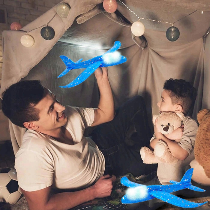 - Самолет оснащен разноцветными светодиодными огнями, которые красиво смотрятся в темноте и освещают полет.