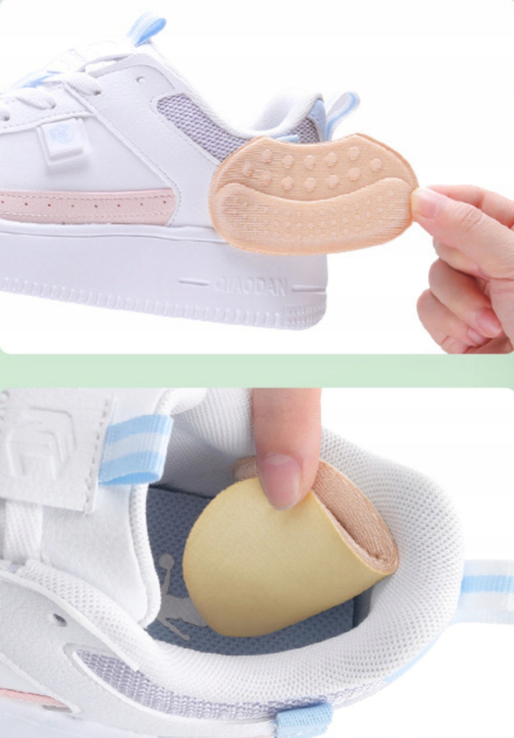 Они доступны в универсальном размере, приклеиваются с внутренней стороны. обуви, они не смещаются при ходьбе, достаточно оторвать защитную пленку и поместить их в заднюю часть обуви.