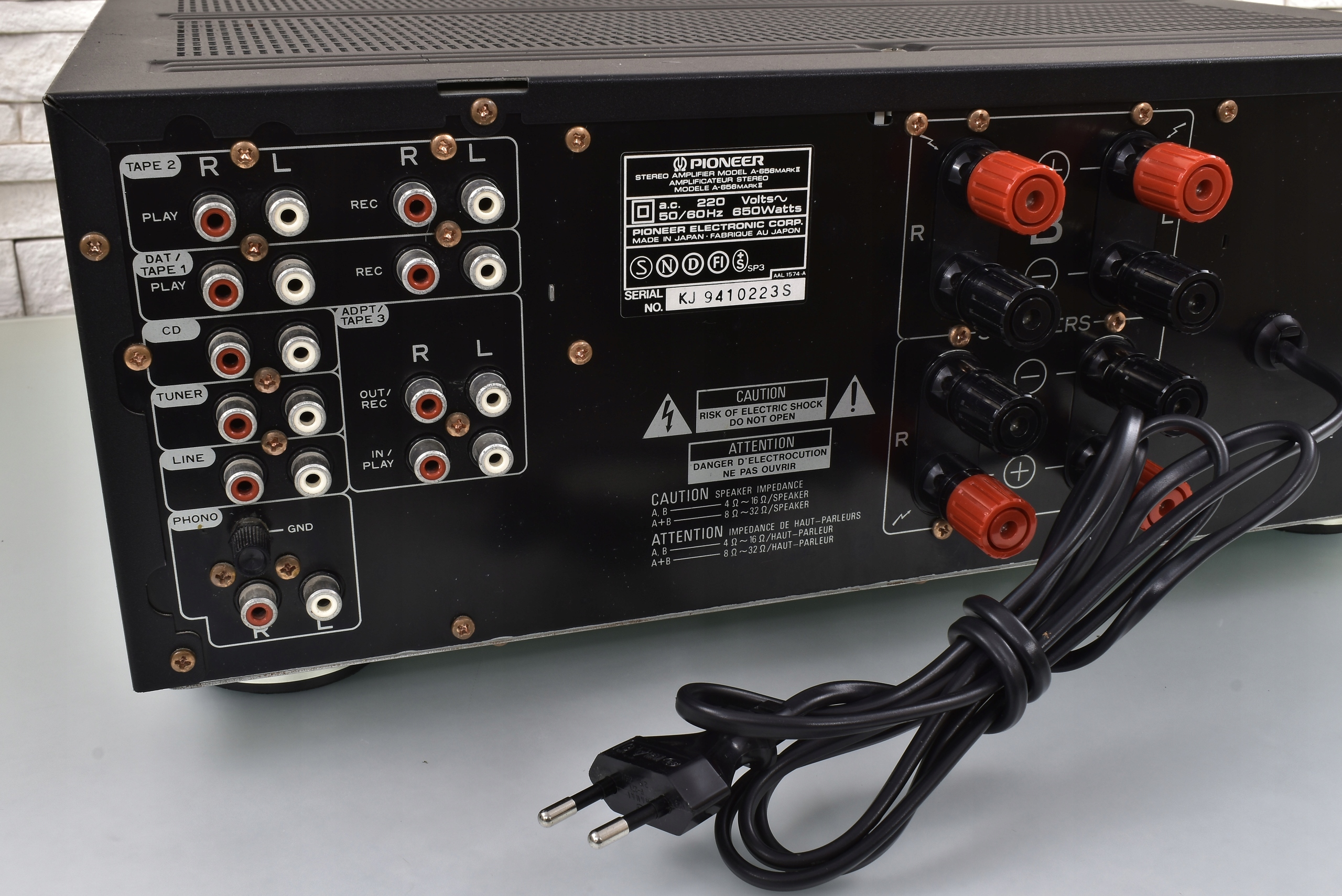 Pioneer A-656 Mark 2 Представляет собой мощную конструкцию с алюминиевой панелью. Он оснащен твердотельным трансформатором и мощными конденсаторами. Как и положено высокой модели, были использованы суперкомпоненты. Гигантский трансформатор мощностью 650 Вт и большие конденсаторы обеспечивают огромную мощность даже при прослушивании на очень большой громкости, и даже тогда звук чистый и «не теряется». Очень прочная конструкция, никакой экономии и компромиссов, все идеально. Думаю удовлетворит даже очень требовательный и критический слух, усилитель без комплексовТехнические данные: