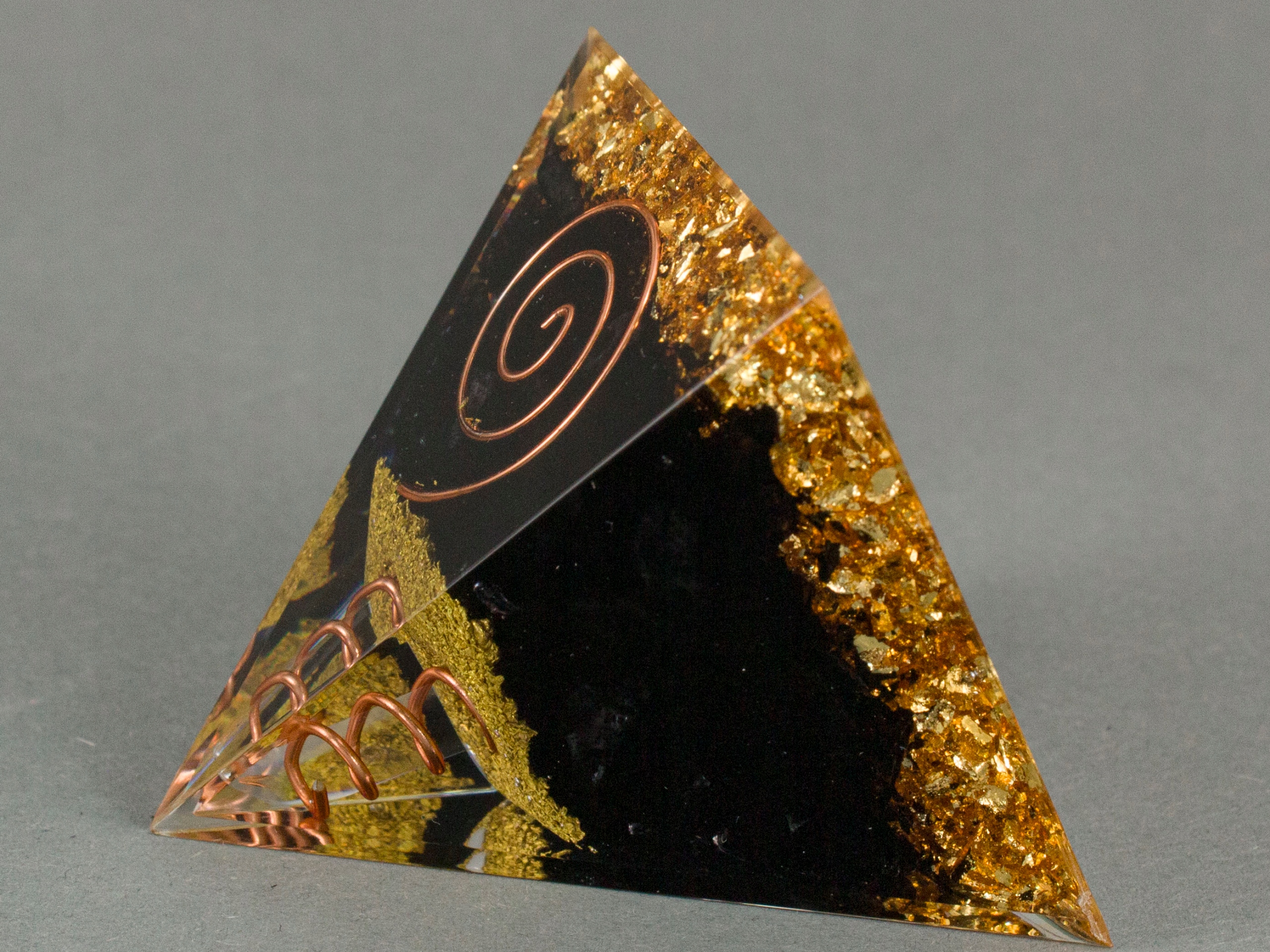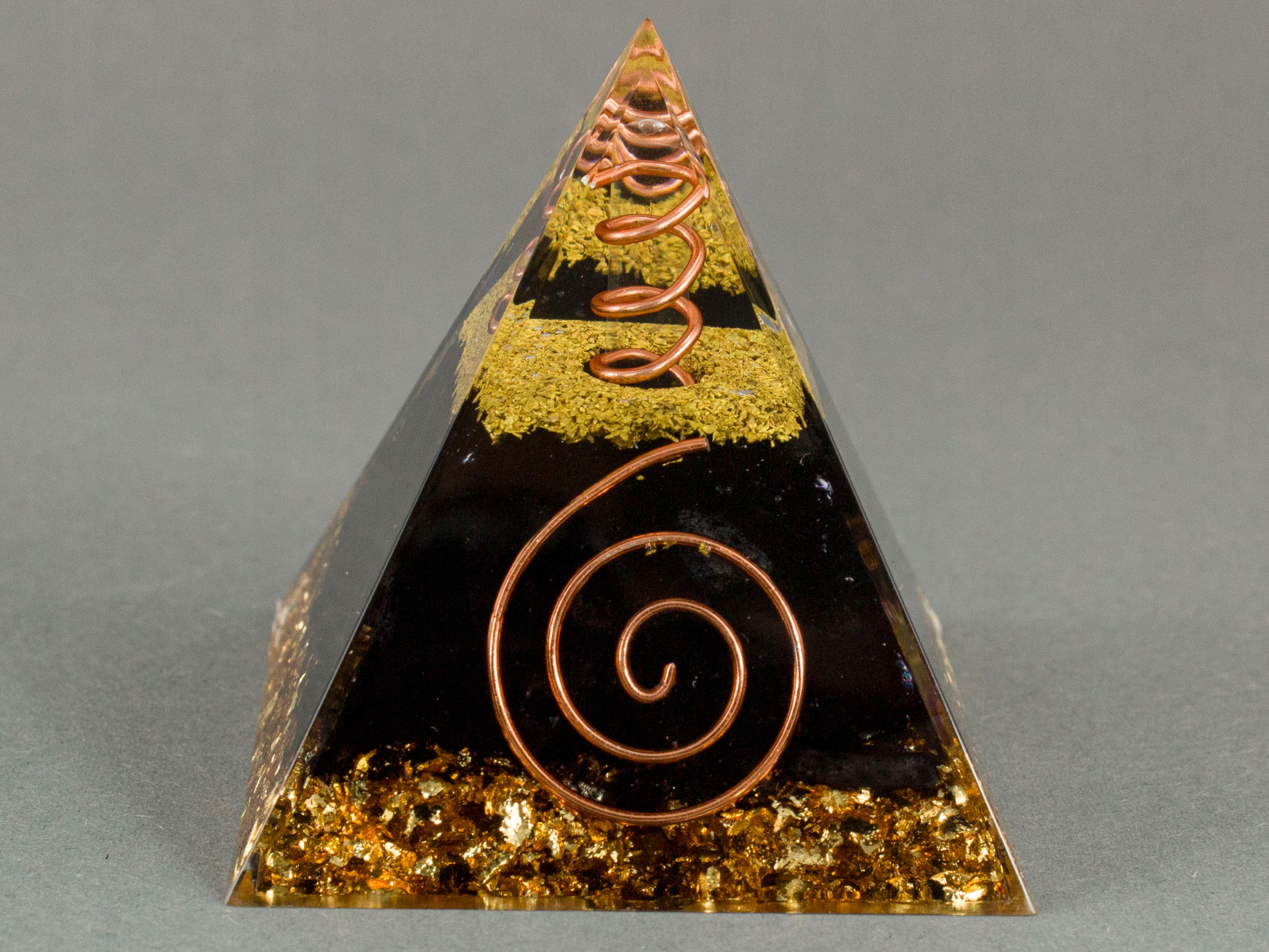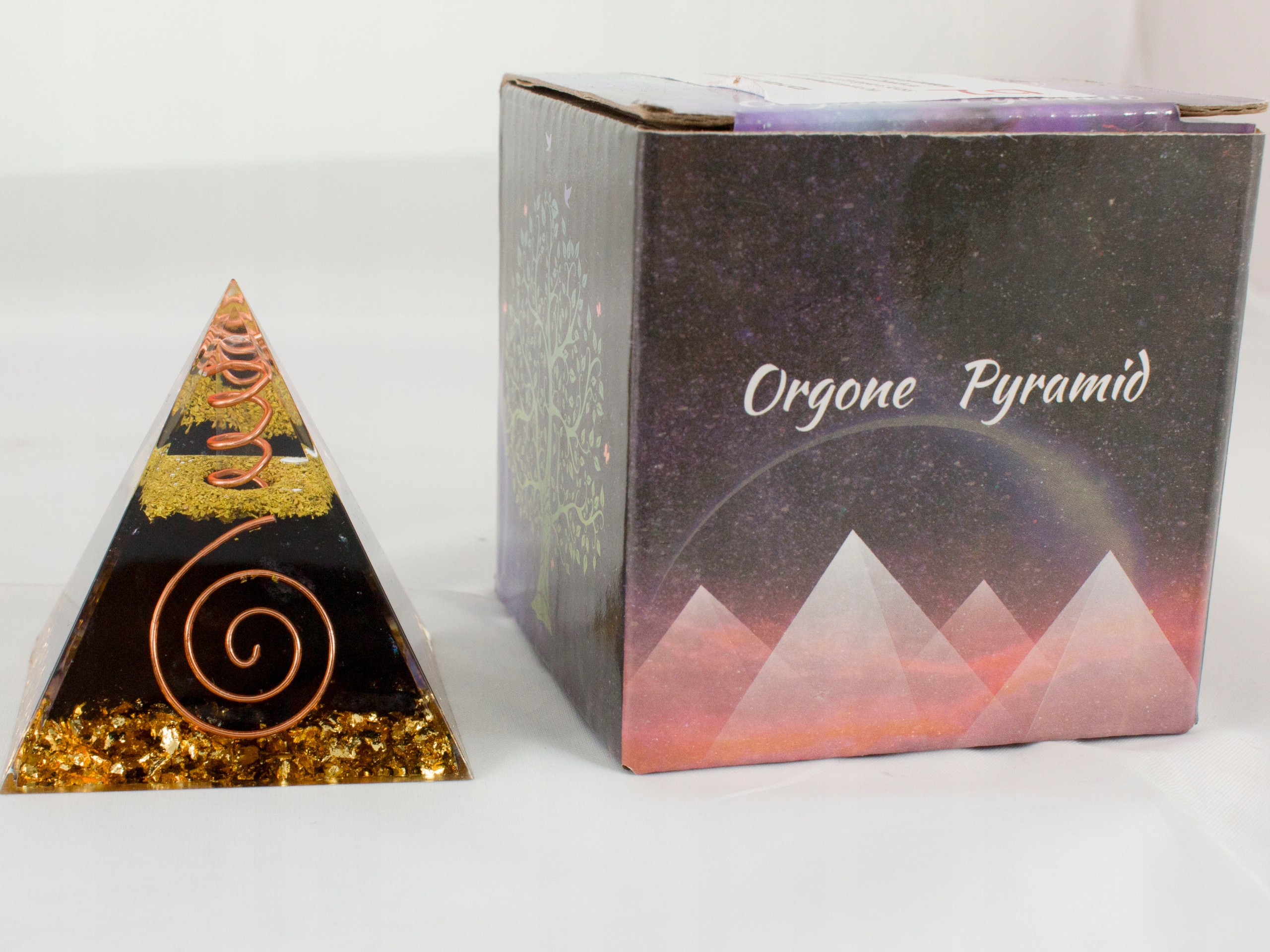 ПІРАМІДА ОРГОНІТ ОБСИДІАН ЗОЛОТА ФОЛЬГА БІЛИЙ ТОПАЗ ГАРМОНІЗУЮЧІ ЧАКРИ 5см