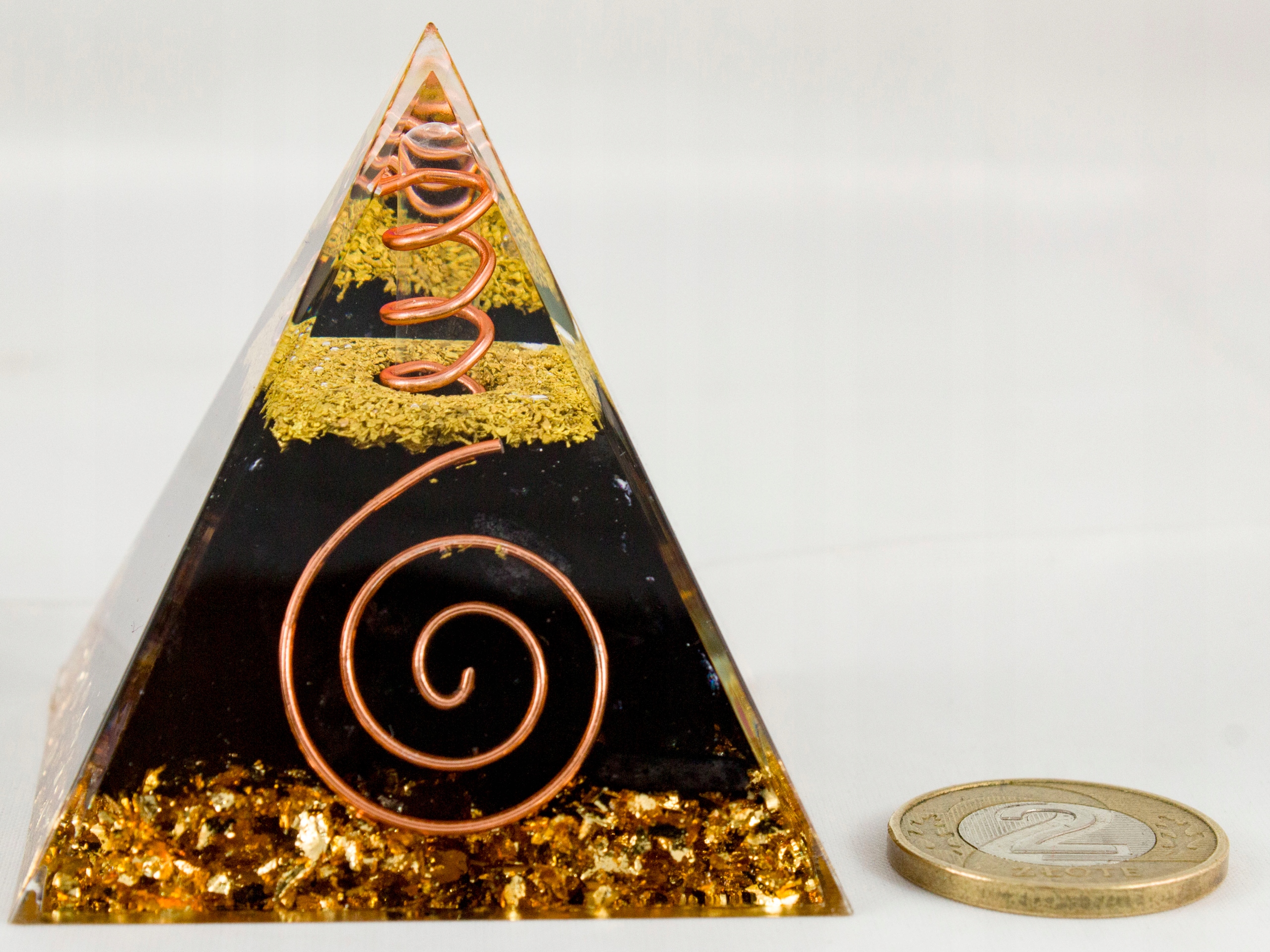 ОРГОНИТОВАЯ ПИРАМИДА ОБСИДИАН ЗОЛОТАЯ ФОЛЬГА ТОПАЗ БЕЛАЯ СМОЛА ЗАЗЕМЛЕНИЕ 5 см