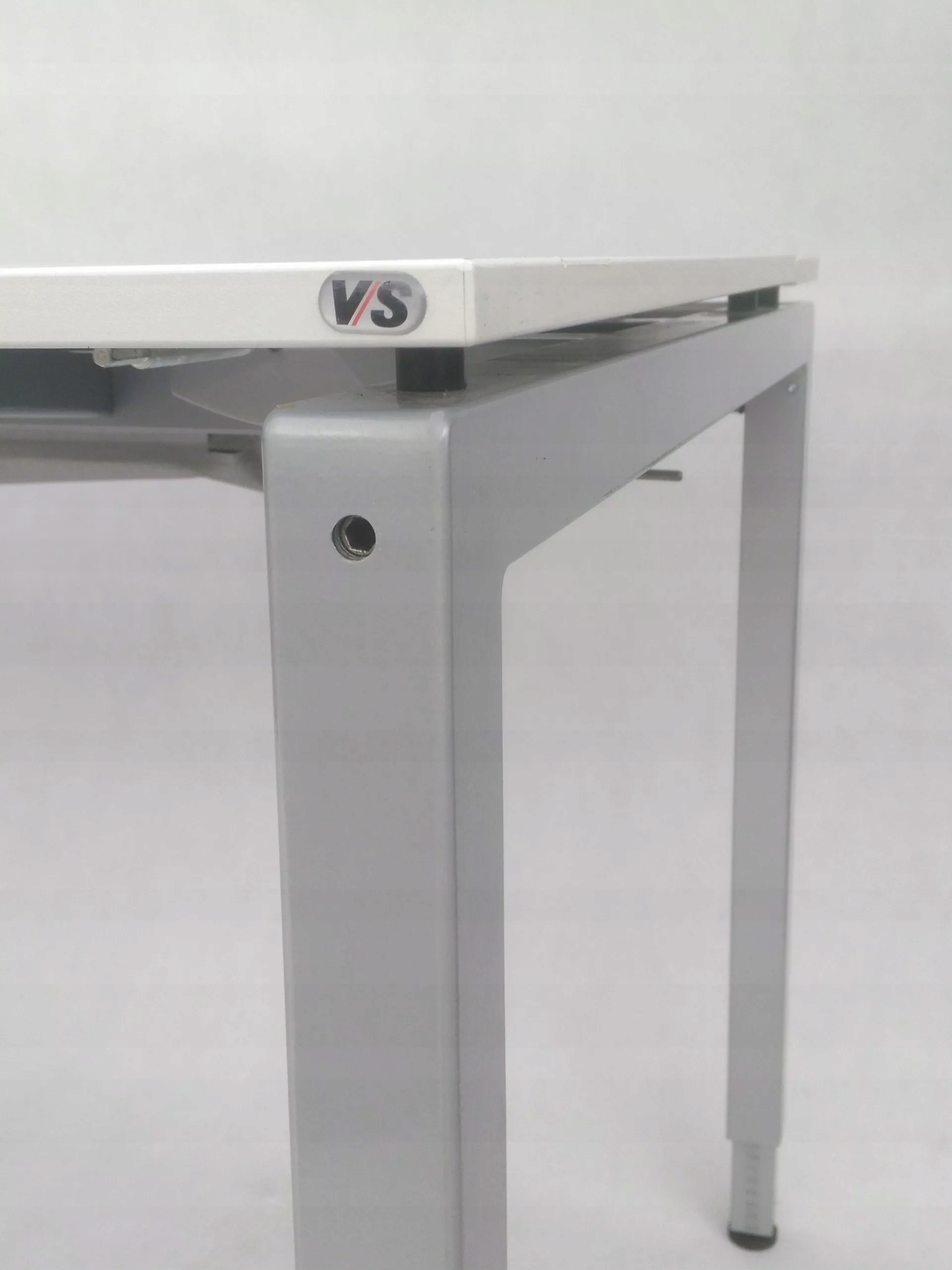 Письменный стол немецкой компании VS — это сочетание простого дизайна и качественных материалов. Столешница состоит из трех элементов – основной доски и двух меньших, открывающихся. Используемое решение позволяет удобно прокладывать кабели. Специальный чехол в виде щеток позволяет выдергивать кабели куда угодно. Под столешницей имеется тканевая ручка и направляющая для кабеля, что значительно облегчает поддержание порядка. Стол оснащен ввинченными в металлический каркас ножками, регулируемыми для обеспечения полной устойчивости мебели. Высота стола регулируется, что позволяет комфортно работать как невысоким, так и высоким людям.