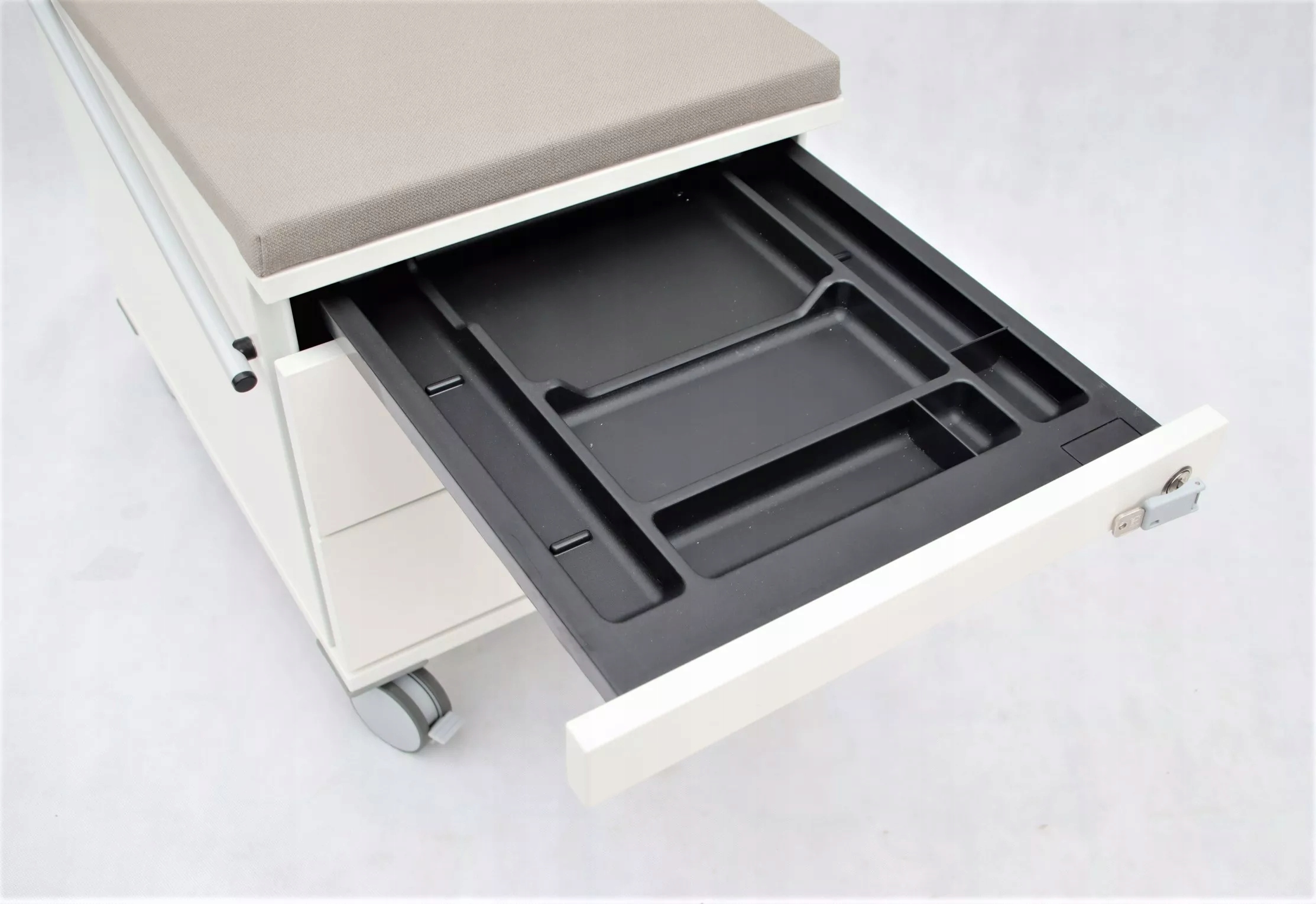 Контейнер Haworth изготовлен из высококачественных материалов, что делает его пригодным не только для домашнего, но и для интенсивного использования в офисных помещениях. Органайзер имеет 3 ящика, которые помогут вам хранить офисные принадлежности в порядке. Дополнительно оснащен ручкой для удобного перемещения и мягкой подушкой. В нижней части контейнера имеются большие колеса, позволяющие свободно перемещать его и размещать в пространстве под столом с возможностью фиксации.