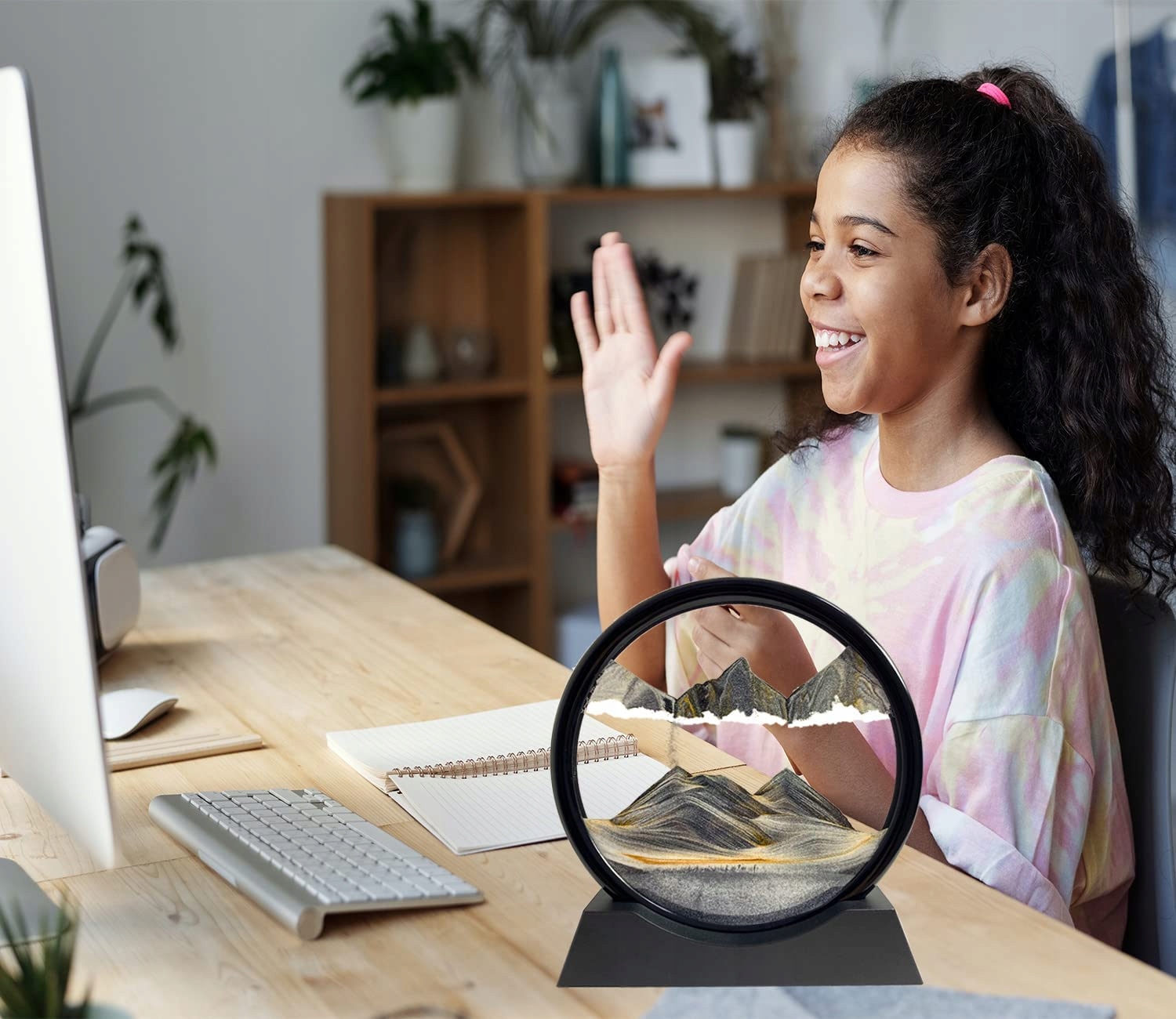 - 🟡Название: 7-дюймовые трехмерные динамические песочные часы 3D круглые движущиеся украшения стола для рисования песком 18* 19 см