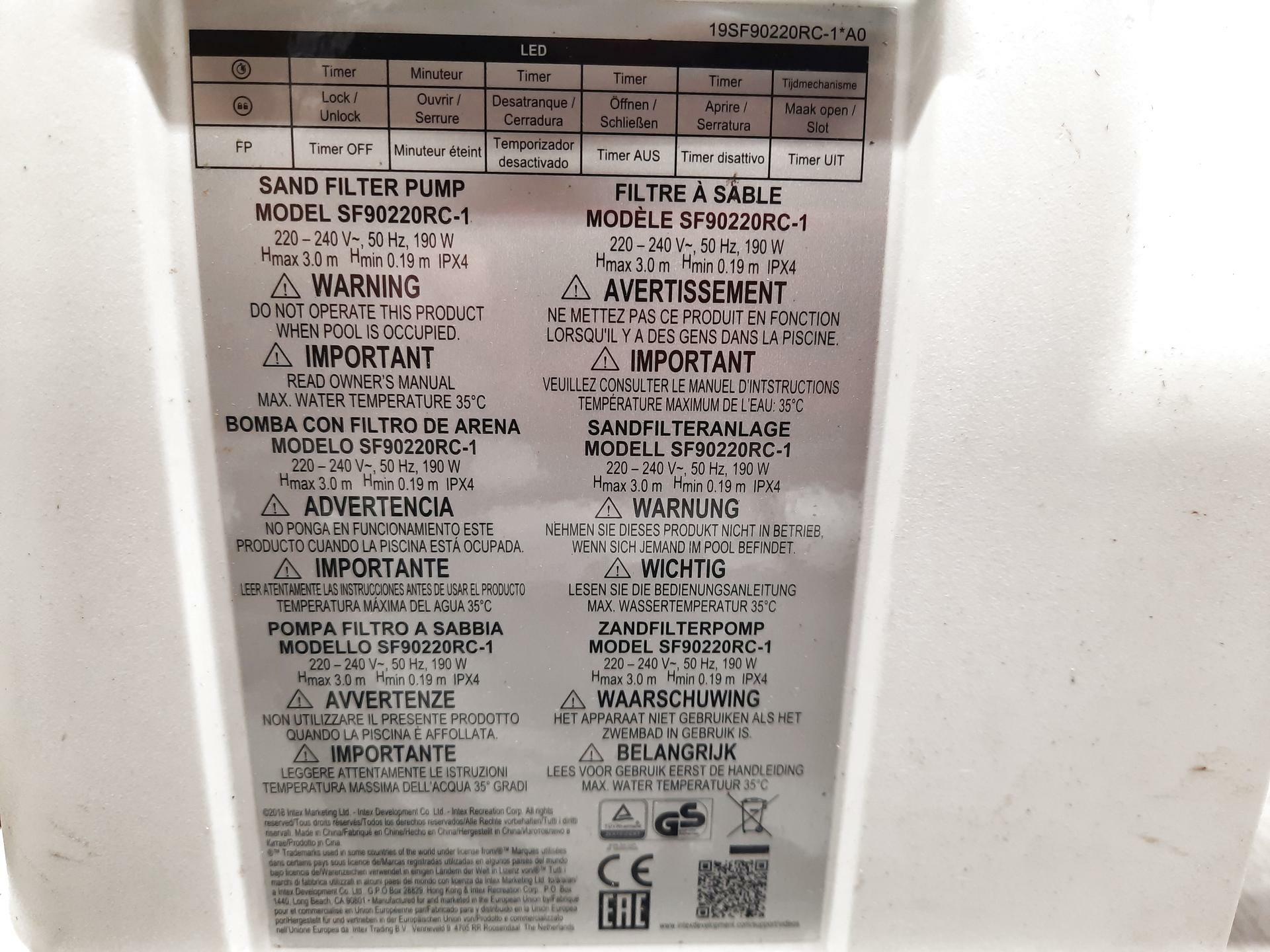 Песочный насос Intex SF920RC-1 4500 л/ч 230В 190Вт