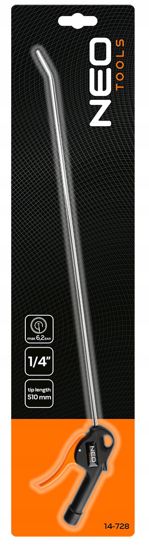 Blowing Gun 510 мм 14-728 с помощью Neo Tools, характеризующихся длиной 510 мм, представляет собой инструмент, оснащенный узким наконечником, который позволяет вам взорвать места для достижения мест. Пистолет из PA66 + стеклянного волокна + металлический макс обеспечивает долговечность и надежность в течение многих лет использования. Поддерживает давление в 6 бар и имеет размер разъема ¼ ".