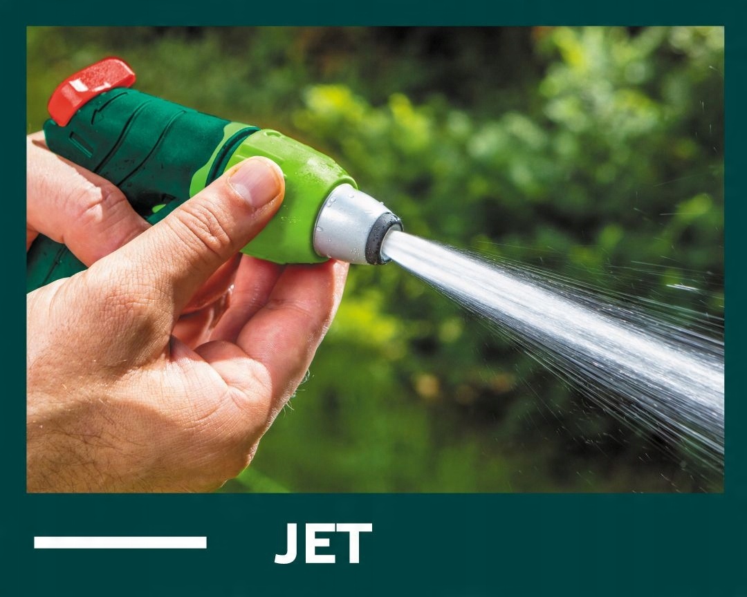Регулируемый пистолетный разбрызгиватель VERTO (арт. № 15G706). Регулируемая головка позволяет установить форму струи воды от тумана до сильной точечной струи. Пистолет имеет блокировку переднего рычага, поэтому он может работать непрерывно. Ручка эргономичной формы хорошо лежит в руке и не скользит, что повышает комфорт работы.