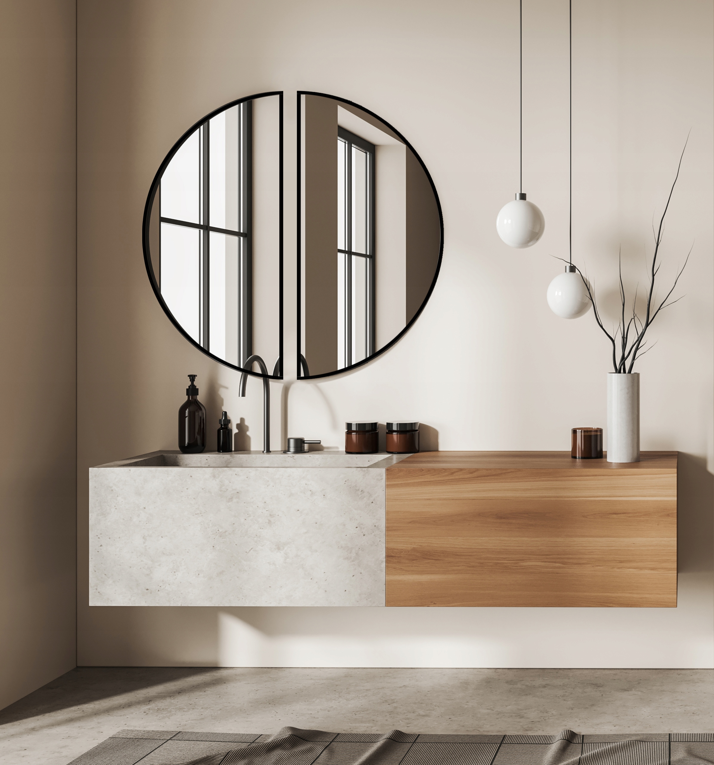 Зеркало создано сплошной алюминиевой матовой рамой, оснащенной подвеской. Они идеально подходят для любого интерьера как для ванной, гостиной, спальни, офиса, зала и отеля.