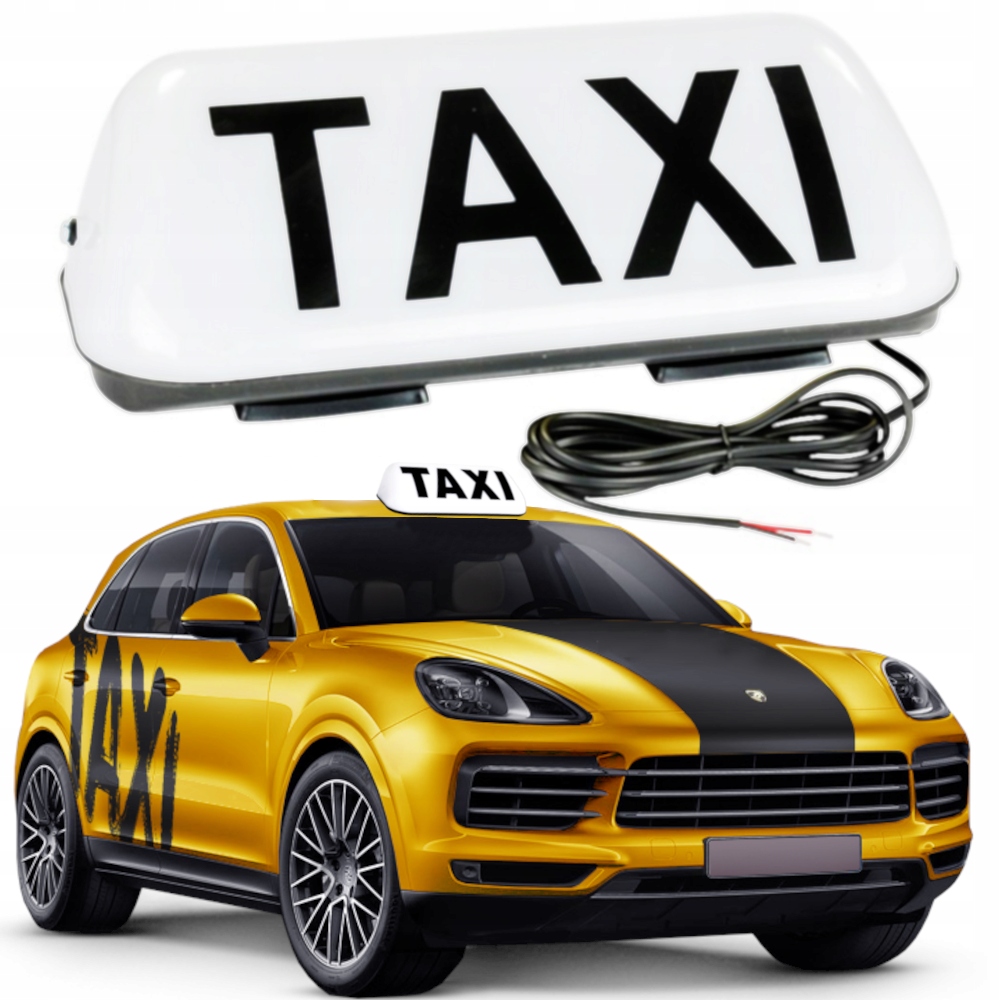 - Белый индикатор TAXI с черной надписью с обеих сторон фонаря, питание от розетки прикуривателя 12В,
