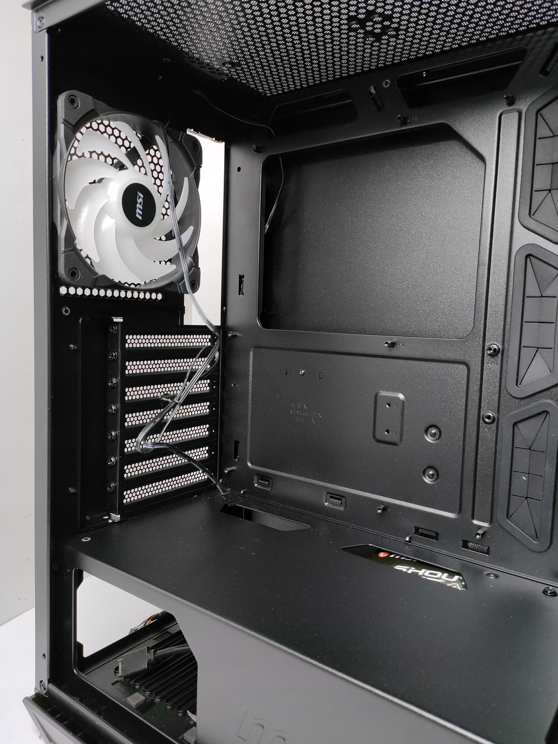 - Предоставьте ваш настольный компьютер с помощью уникального MSI MSI Gungnir Cleclosure 110R. Вы можете с гордостью отобразить созданную конфигурацию и показать рабочего стола, купаемого в многогранном свете. Просторный интерьер будет соответствовать всем необходимым компонентам, а система охлаждения завода обеспечит адекватную вентиляцию.