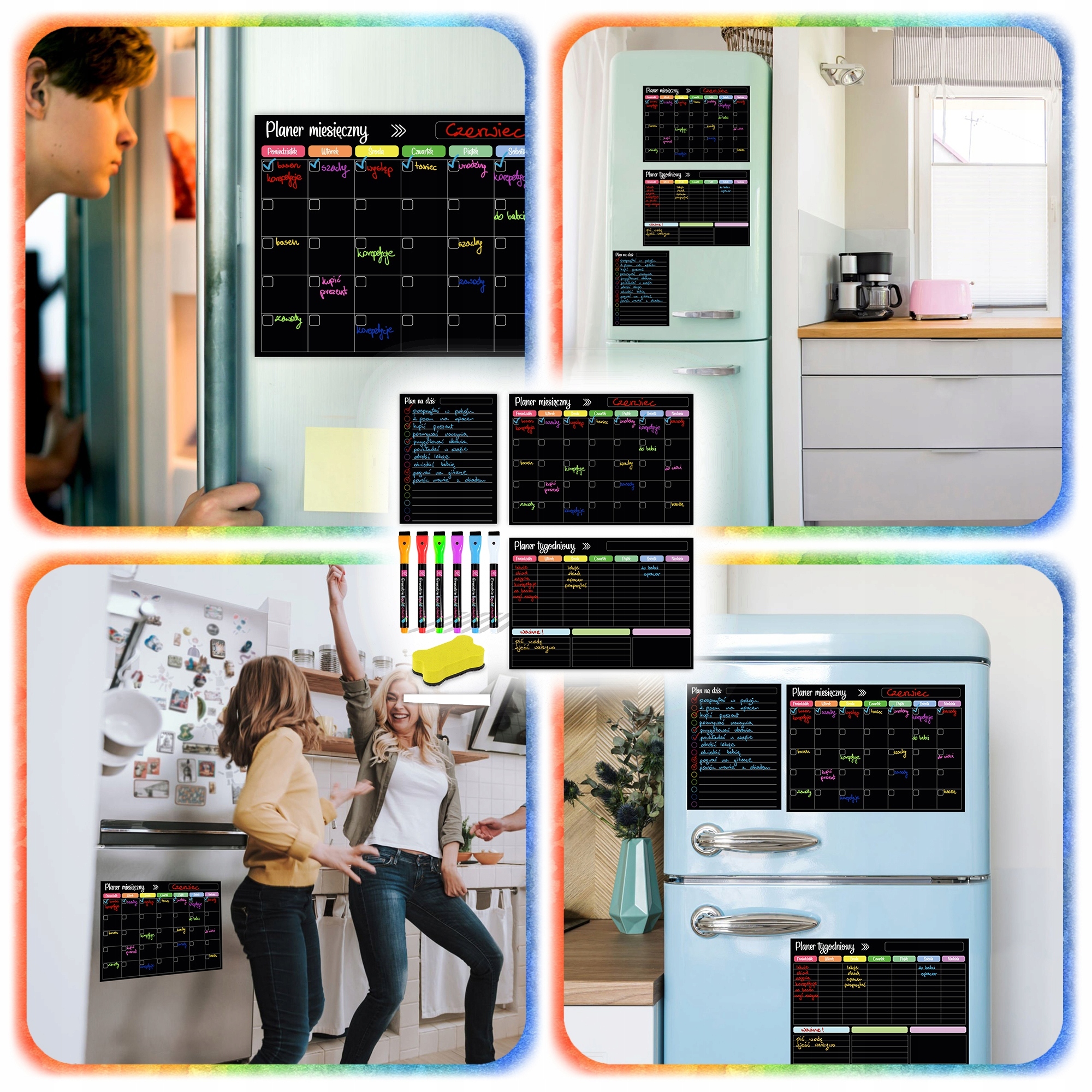 магнитные планы для холодильника 3IN1 - черный, с 6 маркерами и губкой h2>