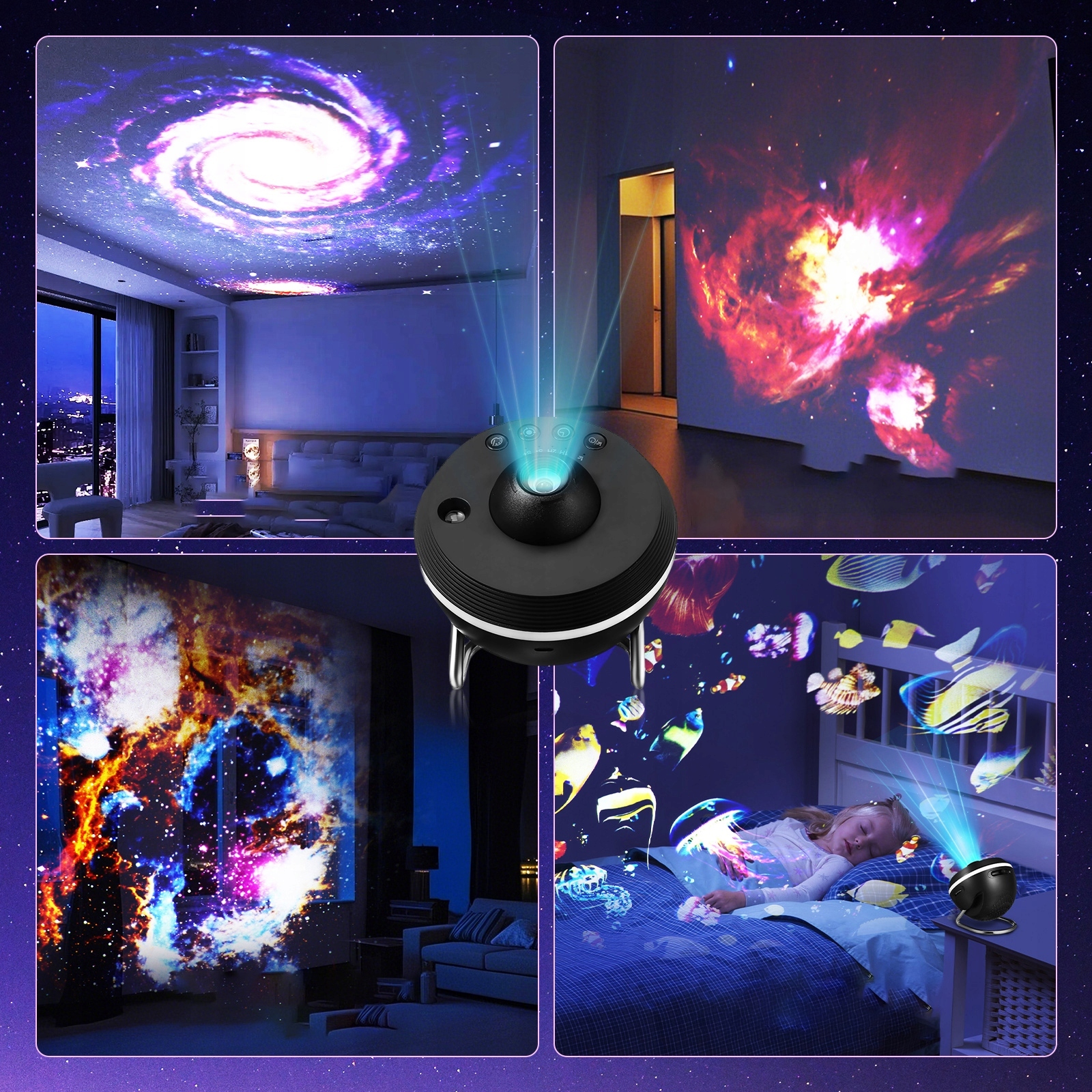 ✅ Полный контроль над визуальным эффектом b> - способность регулировать угол проекции позволяет получить идеальное изображение на потолке, стене или другой поверхности, обеспечивая еще более привыкающие впечатления. в разные комнаты, независимо от их размера и макета. Он работает как в спальне, так и в детской комнате.