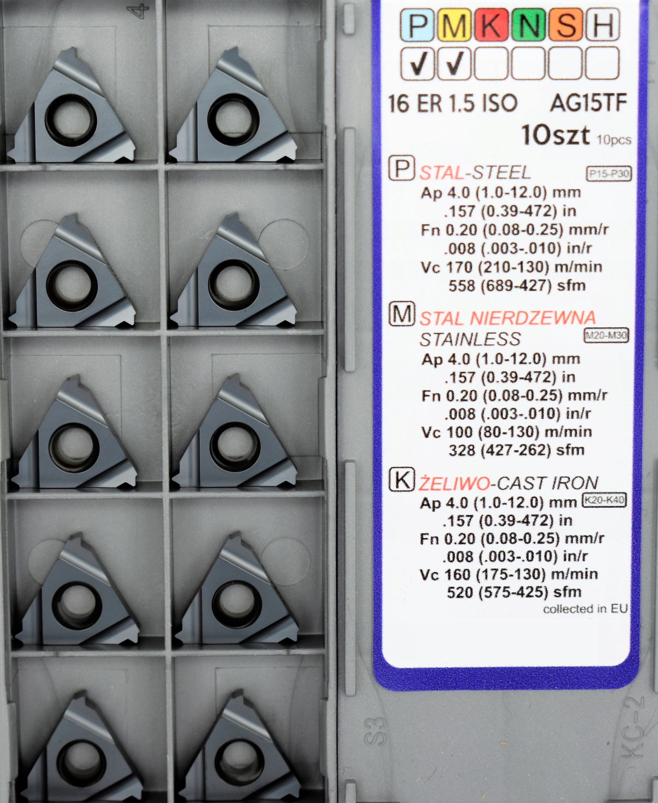 ПРАВАЯ ПЛАСТИНА ДЛЯ МЕТРИЧЕСКОЙ, НАРУЖНОЙ РЕЗЬБЫ. РАЗМЕР ХОДА 1,5 ММ 16ER 1,5 ISO ДЛЯ НАРЕЗАНИЯ РЕЗЬБЫ В СТАЛИ, НЕРЖАВЕЮЩЕЙ СТАЛИ И ЧУГУНЕ AG15TF