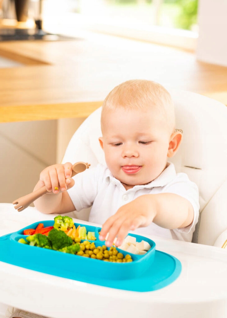 Практическая тарелка в красивом коралловом цвете сделает первые блюда более приятными! Основой тарелки является неразличительный коврик, который предотвращает его неконтролируемое скольжение, что побуждает ребенка предпринять независимые попытки поесть. T сделан полностью из безопасного силикона , который облегчает его очистку