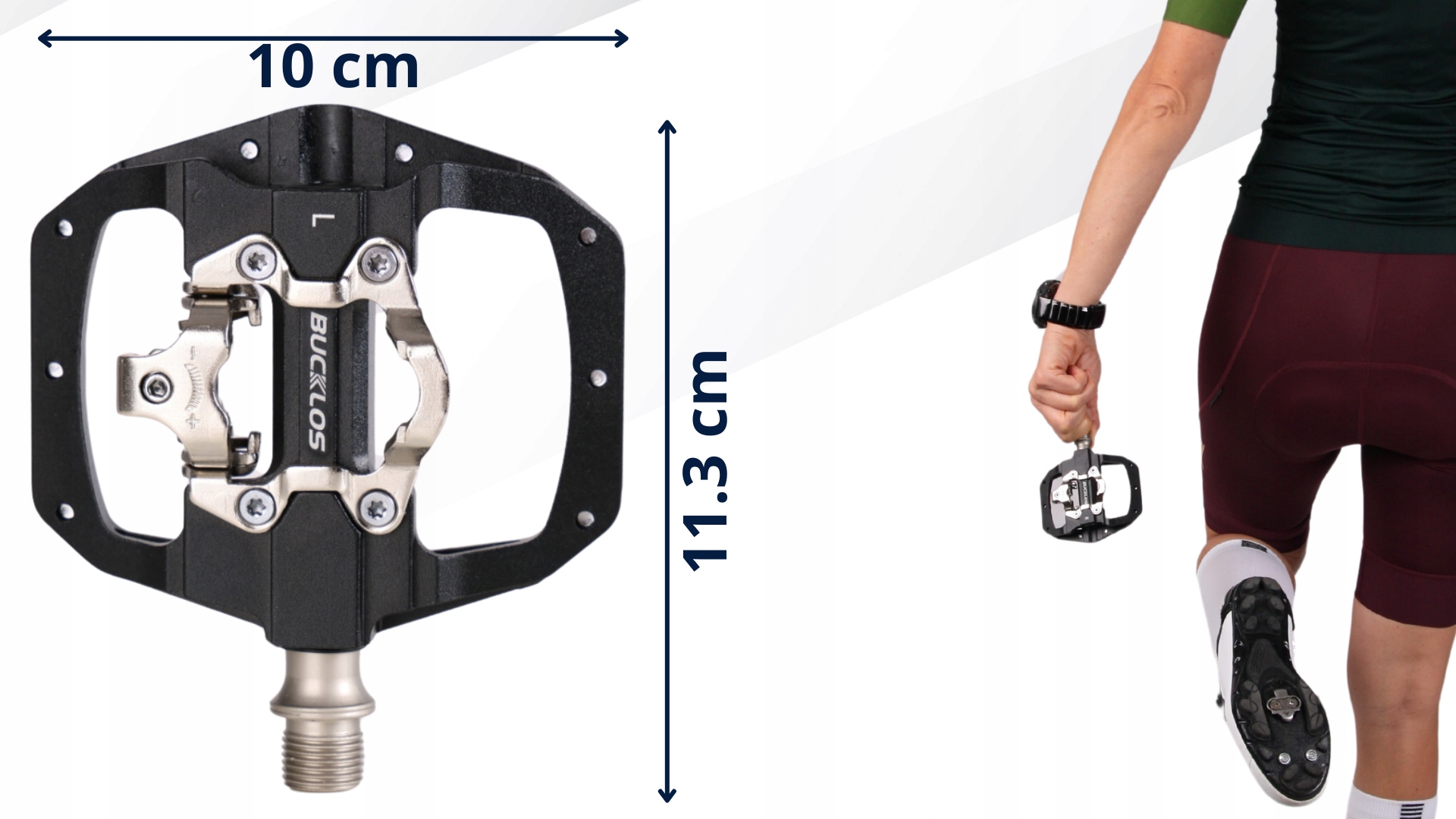 - Высокая платформа: с высотой 113 мм и шириной 100 мм, платформа обеспечивает равномерное распределение давления на ногу. Благодаря этому он предлагает лучшую поддержку и комфорт, что важно как при вождении на обуви SPD, так и в более легких поездках. Кроме того, широкая платформа позволяет легко маневрировать с транспортным средством и правильно перенести мышечную силу на педали