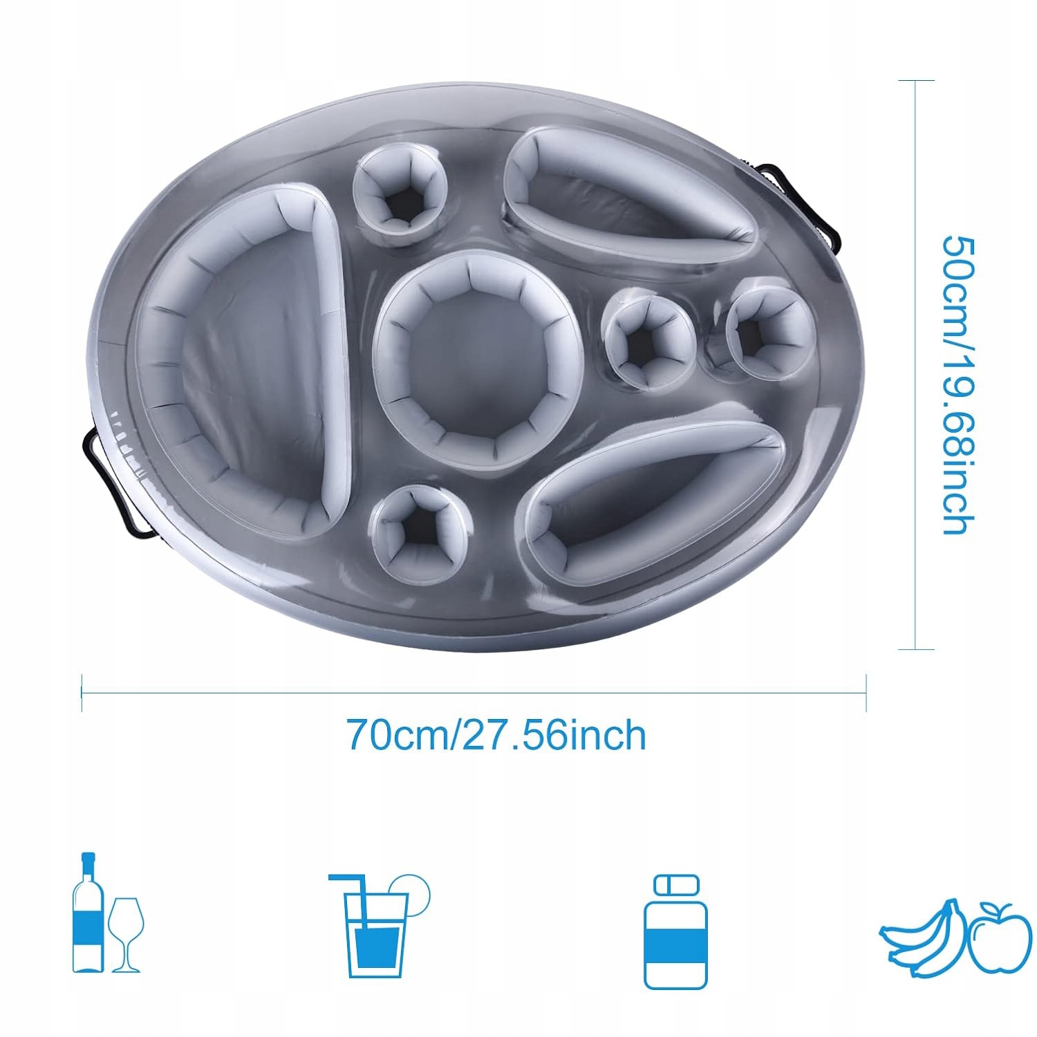 ПЛАВАЮЩИЙ НАДУВНОЙ СТОЛ ДЛЯ БАССЕЙНА ДЖАКУЗИ-БАР НАПИТКИ НАПИТКИ ЗАКУСКИ ИЛИ ТЕЛЕФОН С 8 ОТВЕРСТИЯМИ СЕРЕБРЯНЫЙ