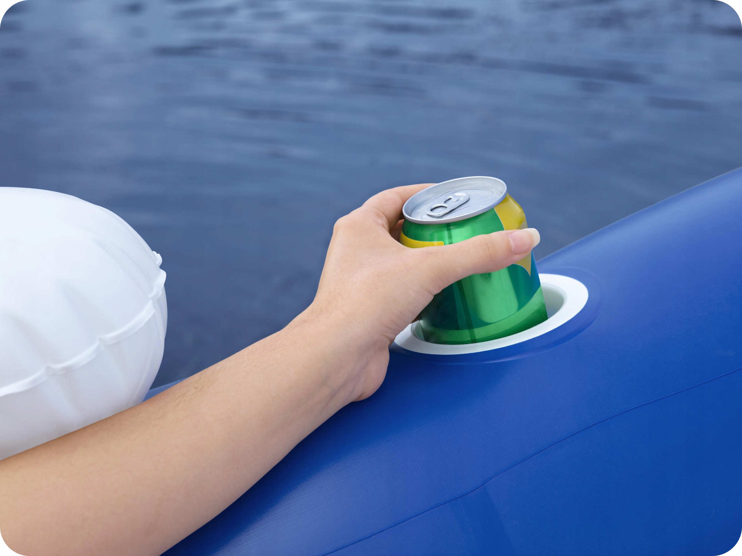 Остров с размерами 191 см х 176 см имеет три удобных спинка и три ручки для напитков. Кроме того, в середине есть дыра. Спасибо, на что вы можете впитать ноги в воде, не покидая остров!