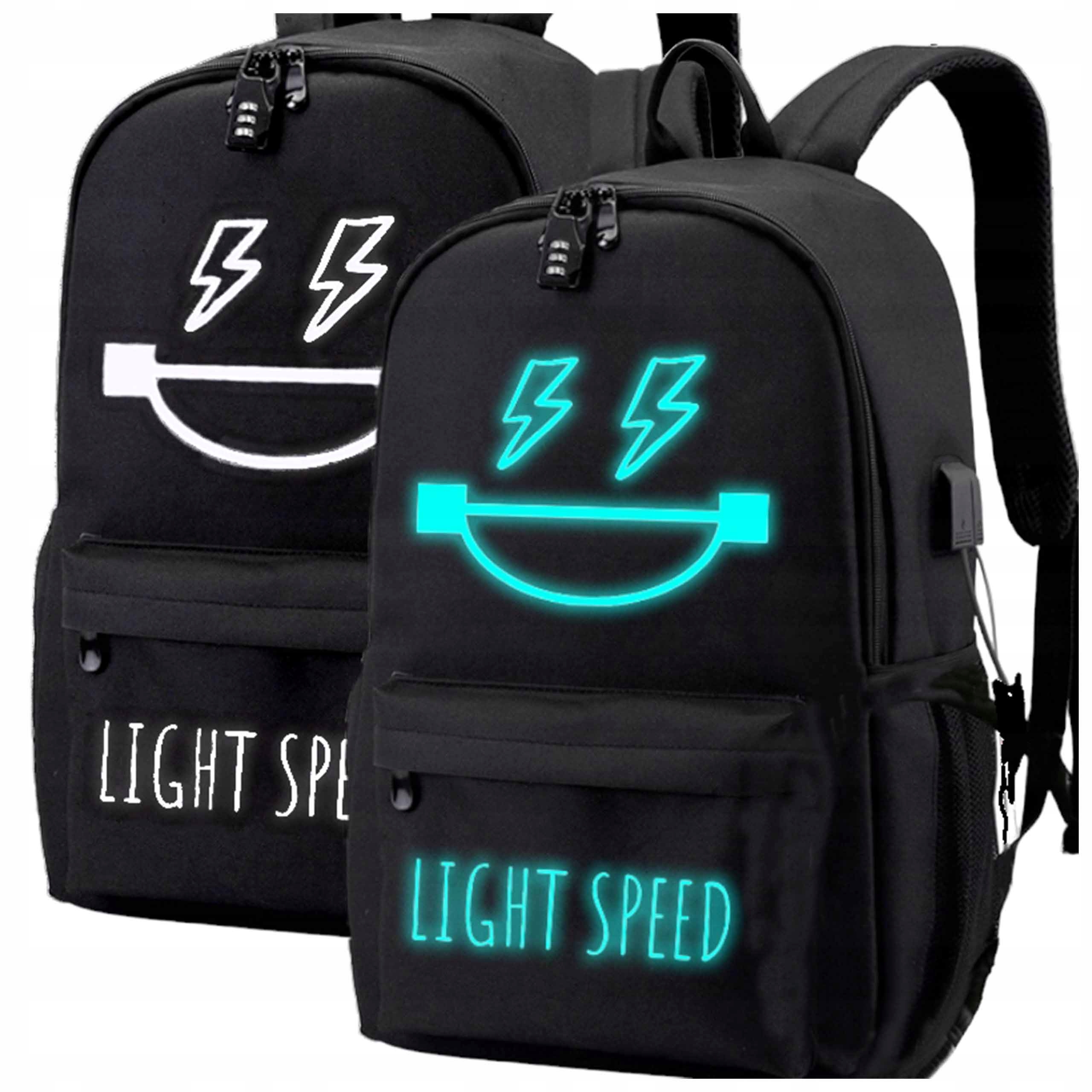 PLECAK SZKOLNY MŁODZIEŻOWY ŚWIECĄCY W CIEMNOŚCI ODBLASKOWY USB LED LEDOWY