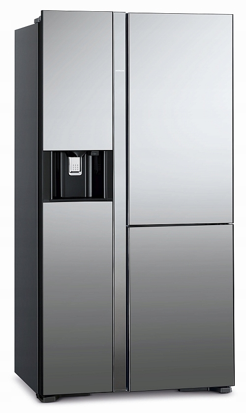 3-дверный холодильник-морозильник типа. Full Full Frost (без шва в обеих камерах), передняя часть безопасного стекла в цвете зеркала (зеркальное стекло). Холодильник оснащен вакуумным ящиком и функцией открытия сенсорной двери (автоматическая дверь)! Самая богатая версия среди холодильников Hitachi