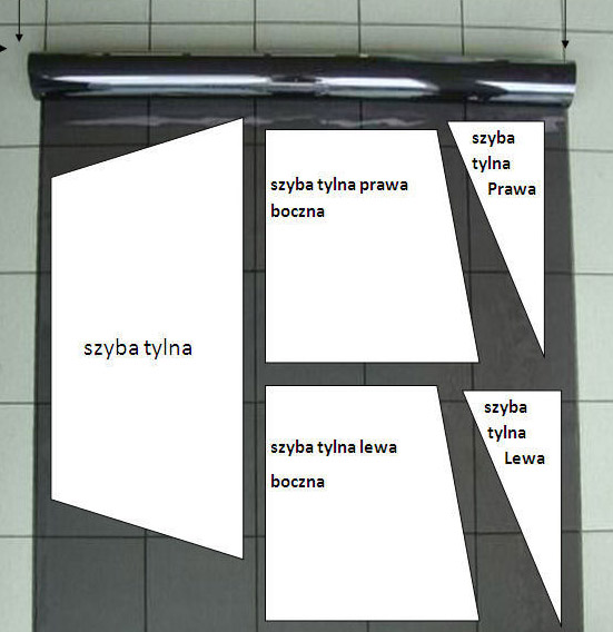 Фольга сжимается только в одном направлении, по длине фольги, поэтому рисуем окошки вы хотите тонировать, как показано ниже.