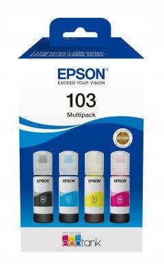 Набор бутылок с чернилами Epson 103 в черном, голубом, пурпурном и желтом цвете с грузоподъемностью 65 мл, совместимых с печатными устройствами Ecotank L5296, Ecotank L5290, Ecotank L3266, Ecotank L3260, Ecotank L3256 50, Ecotank L3211, Ecotank L3260, Ecotank L3256 50, Ecotank L3211, Ecotank L3260, Ecotank L3256 50, Ecotank L3211, Ecotank L3260, Ecotank L3256 50, Ecotank L32111, Ecotank L3260. L3210, Ecotank L1250 и Ecotank L1210