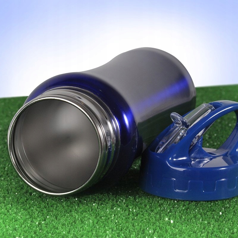 Высококачественная индивидуальная бутылка для воды. Изготовлен из нержавеющей стали, с мундштуком. Идеально подходит для активного отдыха и длительных прогулок.