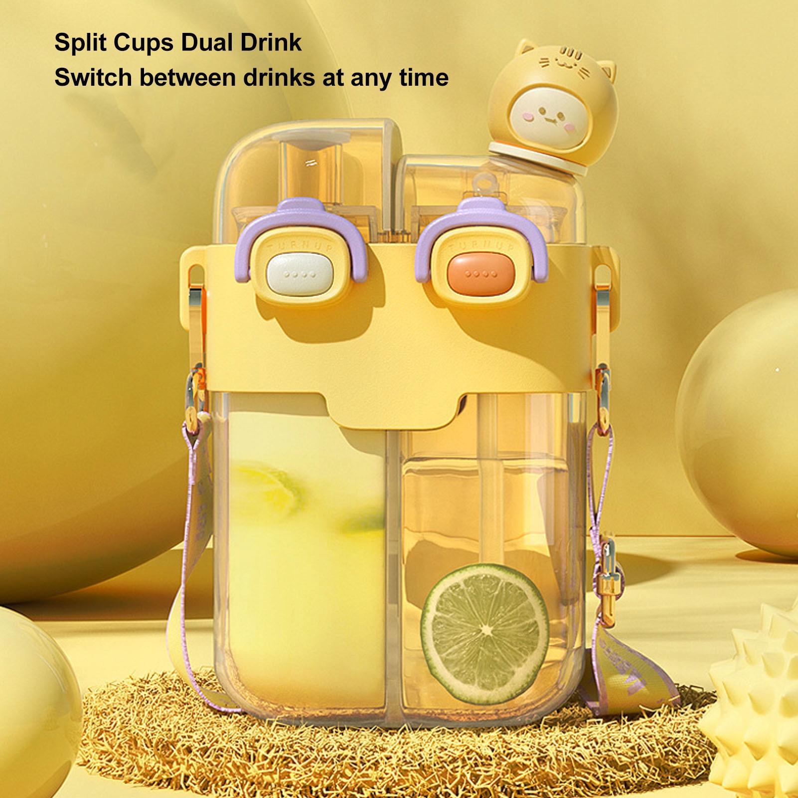 Функция: 1. Двойное использование: эта очаровательная бутылка с водой содержит 2 чашки для хранения различных напитков, с вместимостью 780 мл, может удовлетворять ежедневные потребности в напитках.