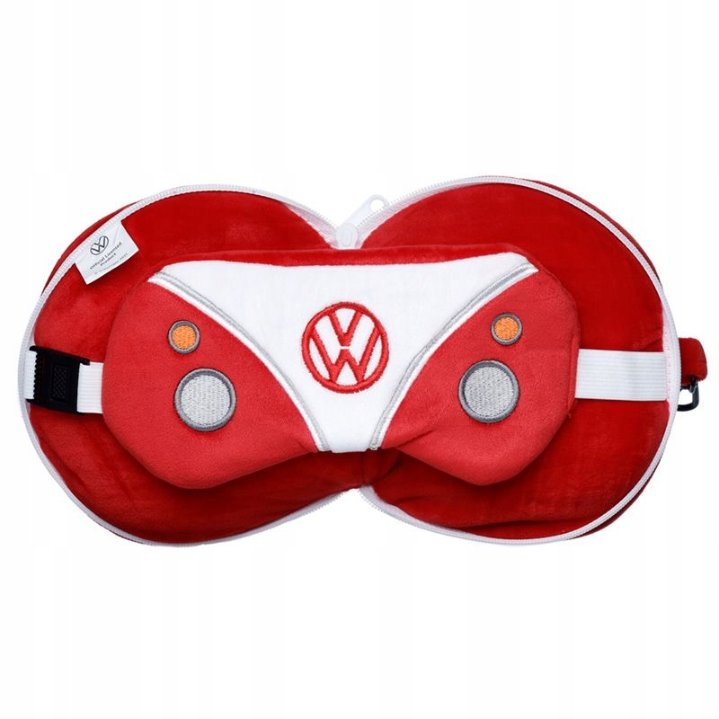 <р> Высота 15см Ширина 15см Глубина 10см Открытый 15х27х6,5см- Мягкая круглая подушка и маска для глаз "Volkswagen VW T1 Camper Bus" - красный
