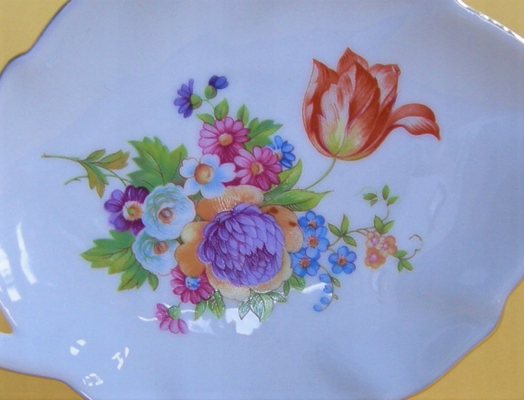 Цвет фарфора: белый. В зеркале стоит впечатляющий букет ярких цветов. Ручная роспись. Позолоченная отделка.