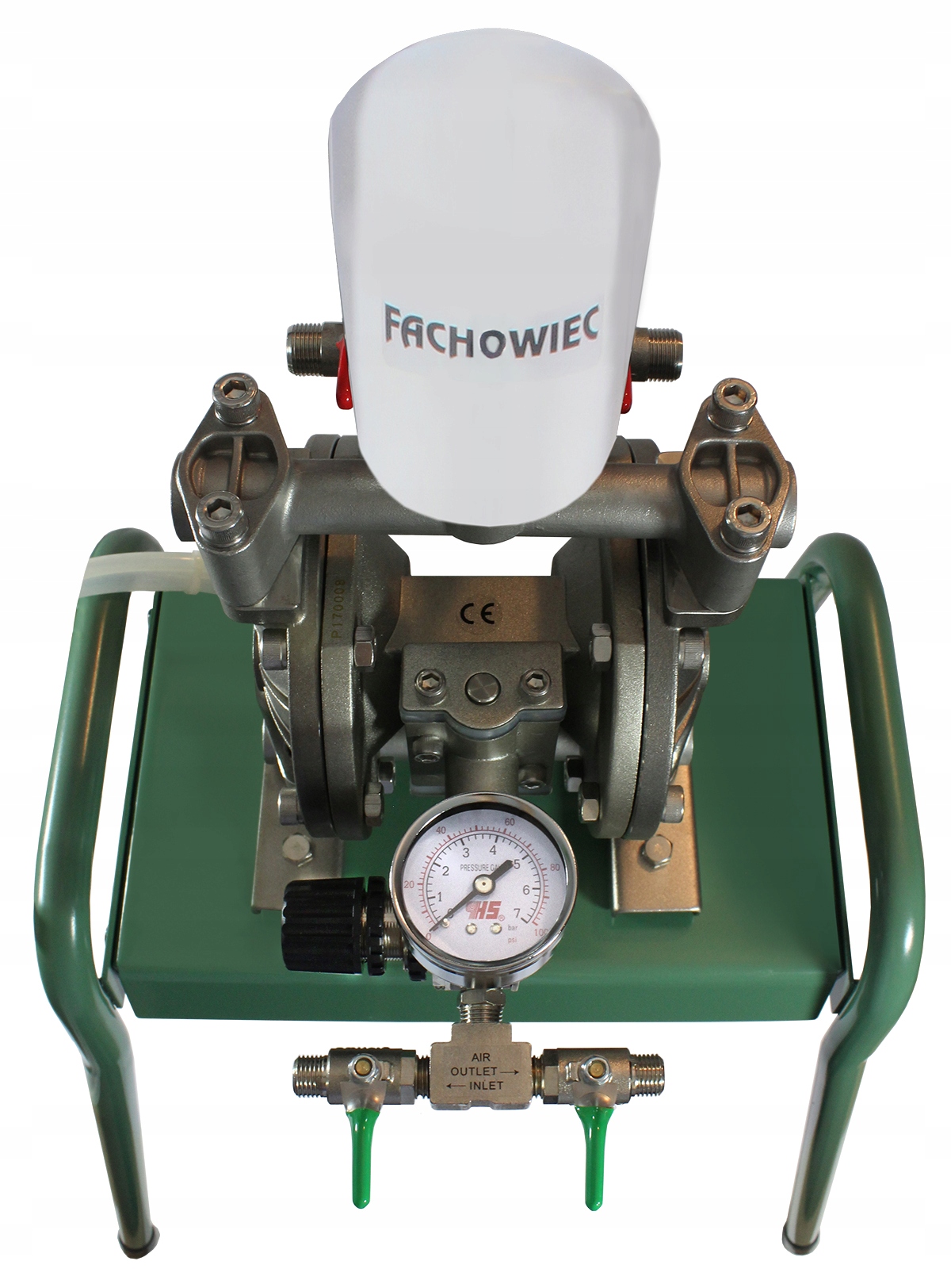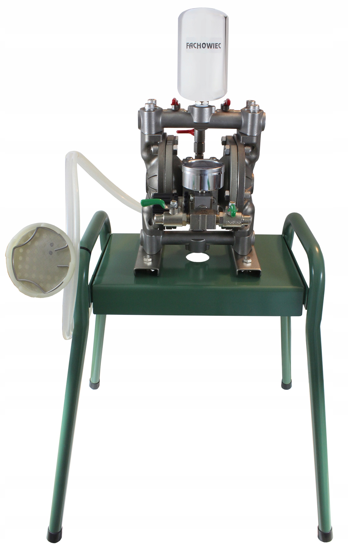 В стандартной комплектации устройство оснащено стойкой, редуктором давления сжатого воздуха, регулирующим количество циклов работы насоса, шаровыми кранами, отсекающими линии воздуха и материала, всасывающие и переливные линии.