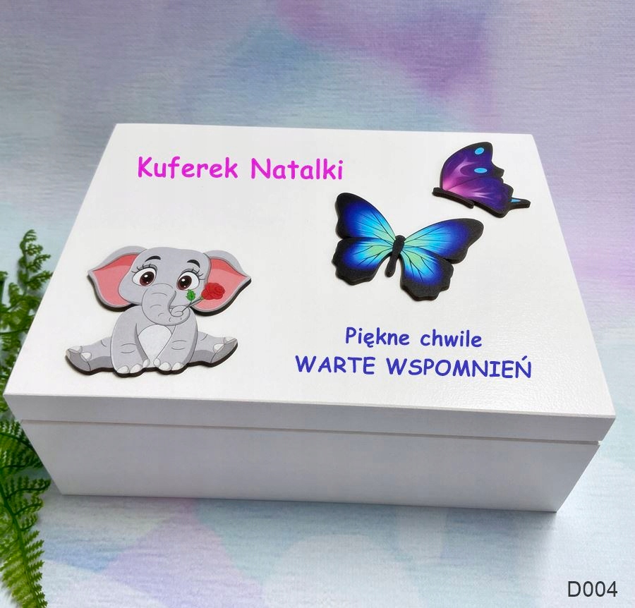 Деревянная коробка от внешней окрашенной белой с красочными мотивами, напечатанными на облаках, Имя персонализации
