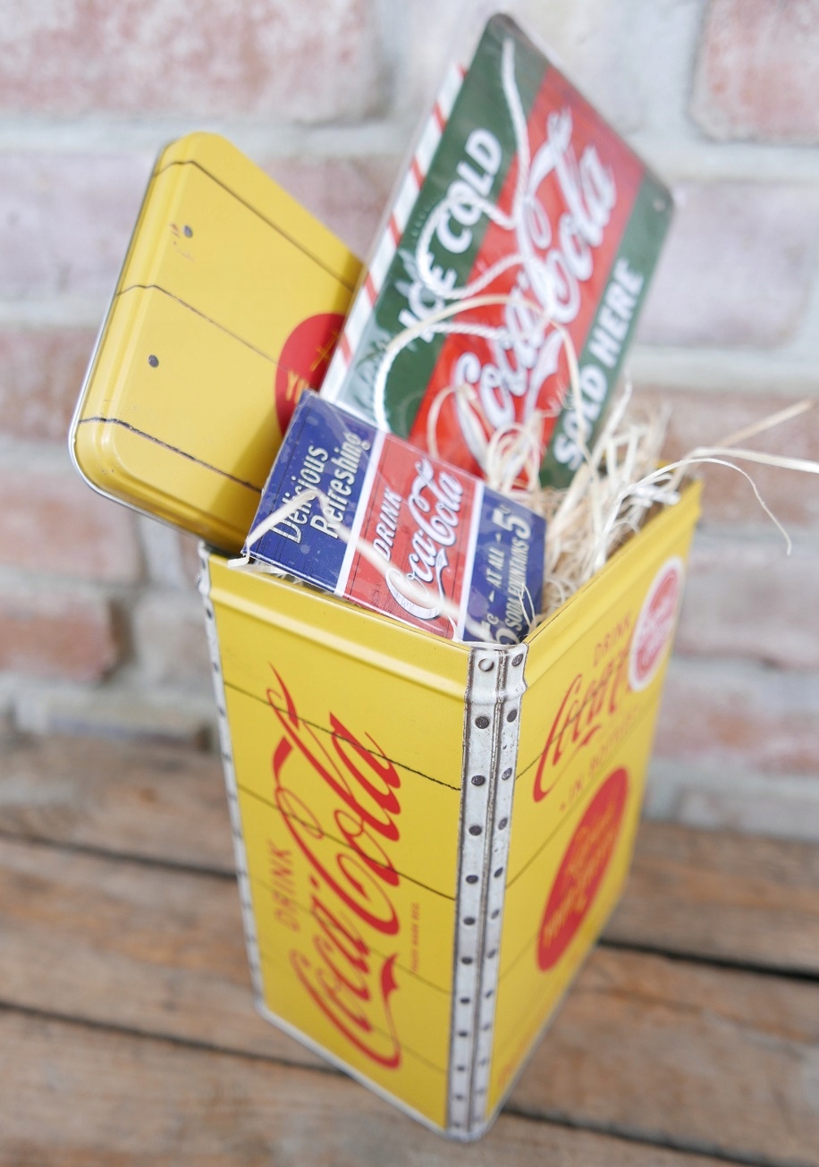 <р> Набор оригинальных гаджетов Coca Cola <р> В набор входят оригинальные товары: <р> -Металлическая банка <р> - Двусторонняя металлическая дверная вешалка <р> -Магнит на холодильник <р> Внутри консервная банка набита специальным сеном, идеальна в качестве подарка. <р>