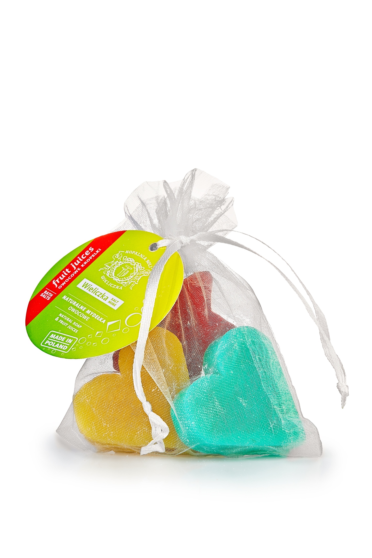 Натуральные фруктовые мыло: ладони для натрия, ядра натрия, аква, сахароза, пропиленгликоль, глицерин, ПЭГ-8, пальмовая кислота, хлорид натрия, ядра пальмы, тетразодий Эдта, Тертасодиум-тетронат, (+/-), (+/) парфум ci. 19140, CI 42090, CI 73360, CI 51319.