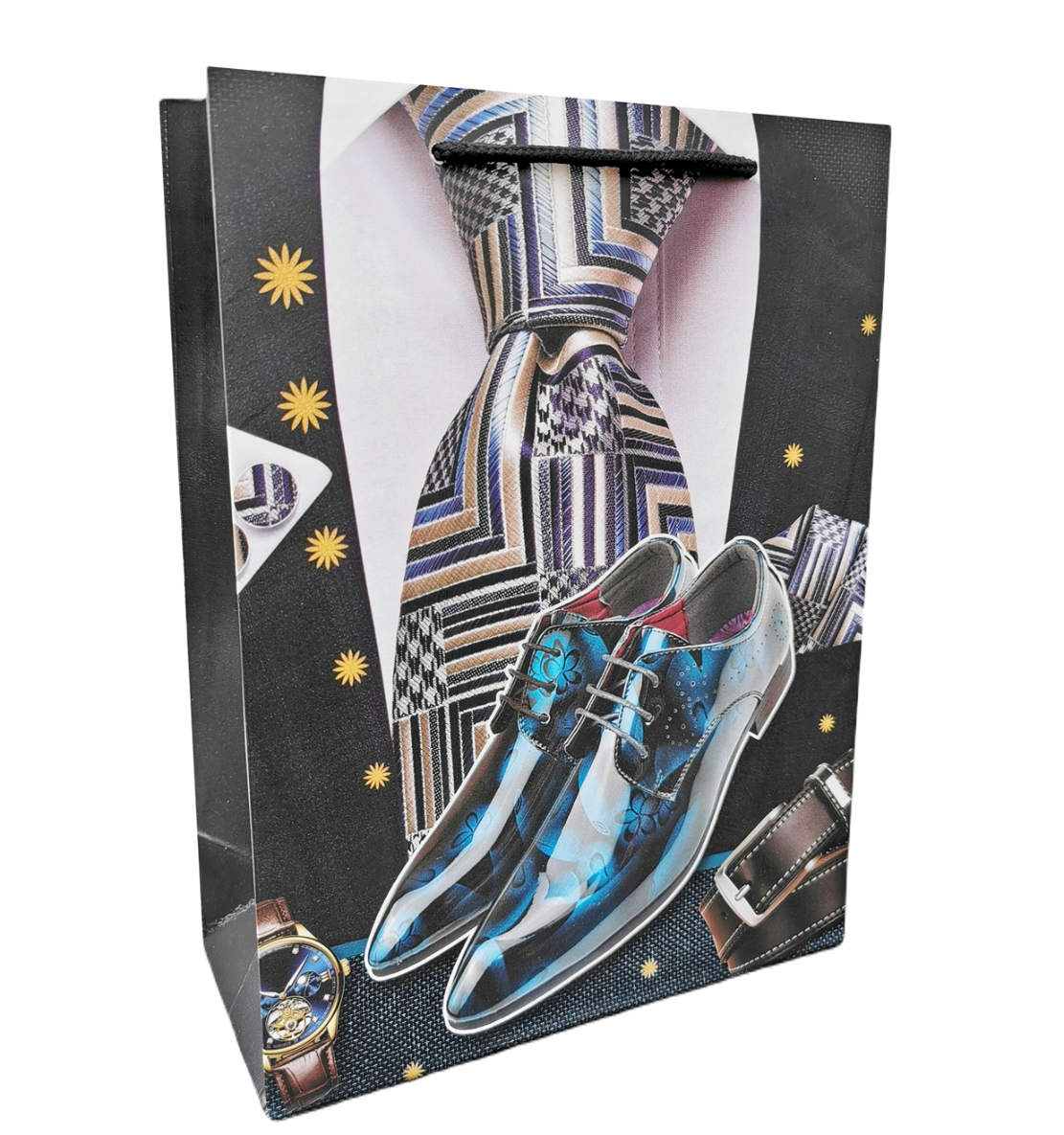 Элегантный подарочный пакет с печатными элементами, создавая уникальный эффект. Сумочка, сделанная из толстой лакированной бумаги. В идеале подходит для упаковки подарка.