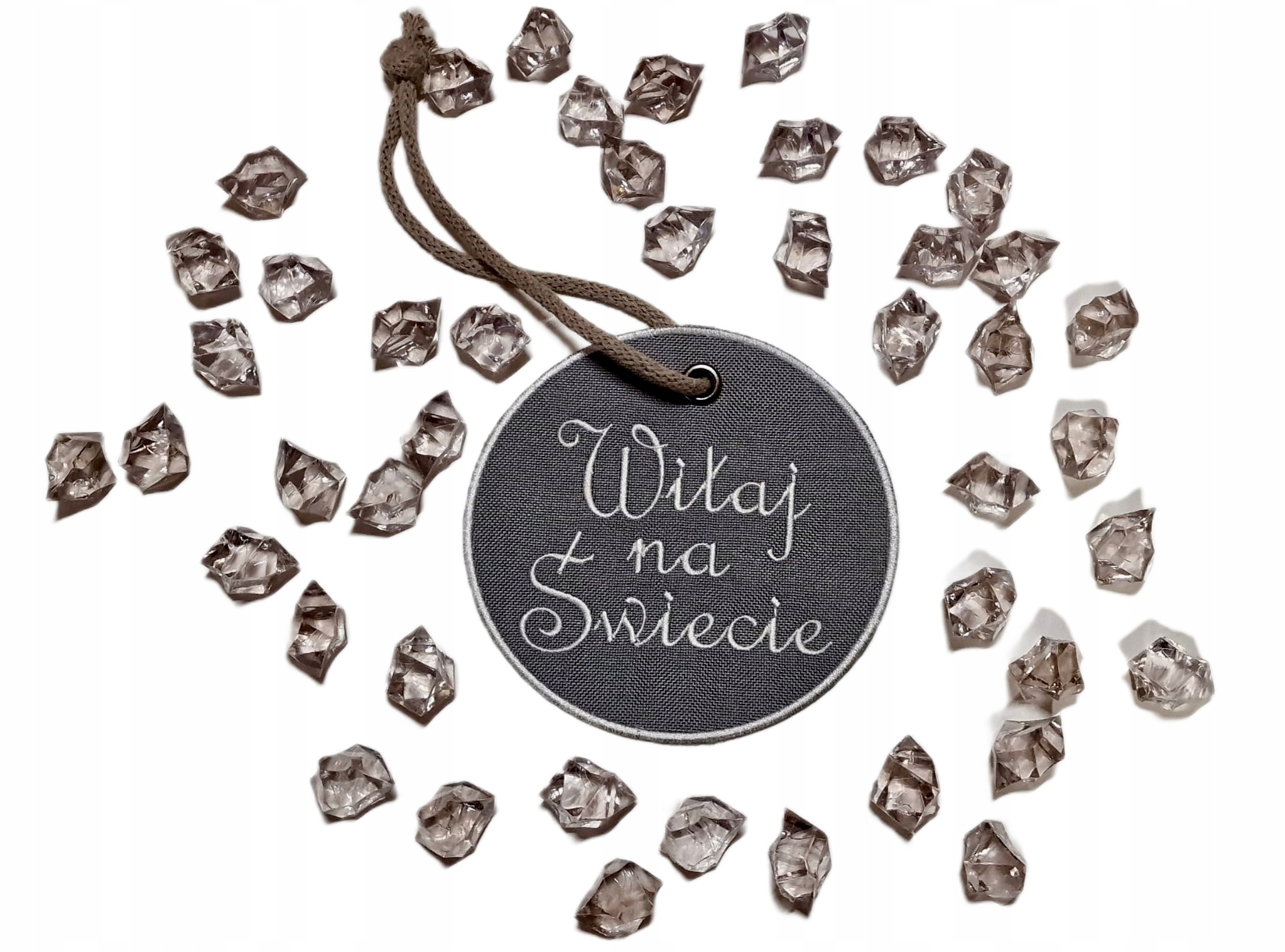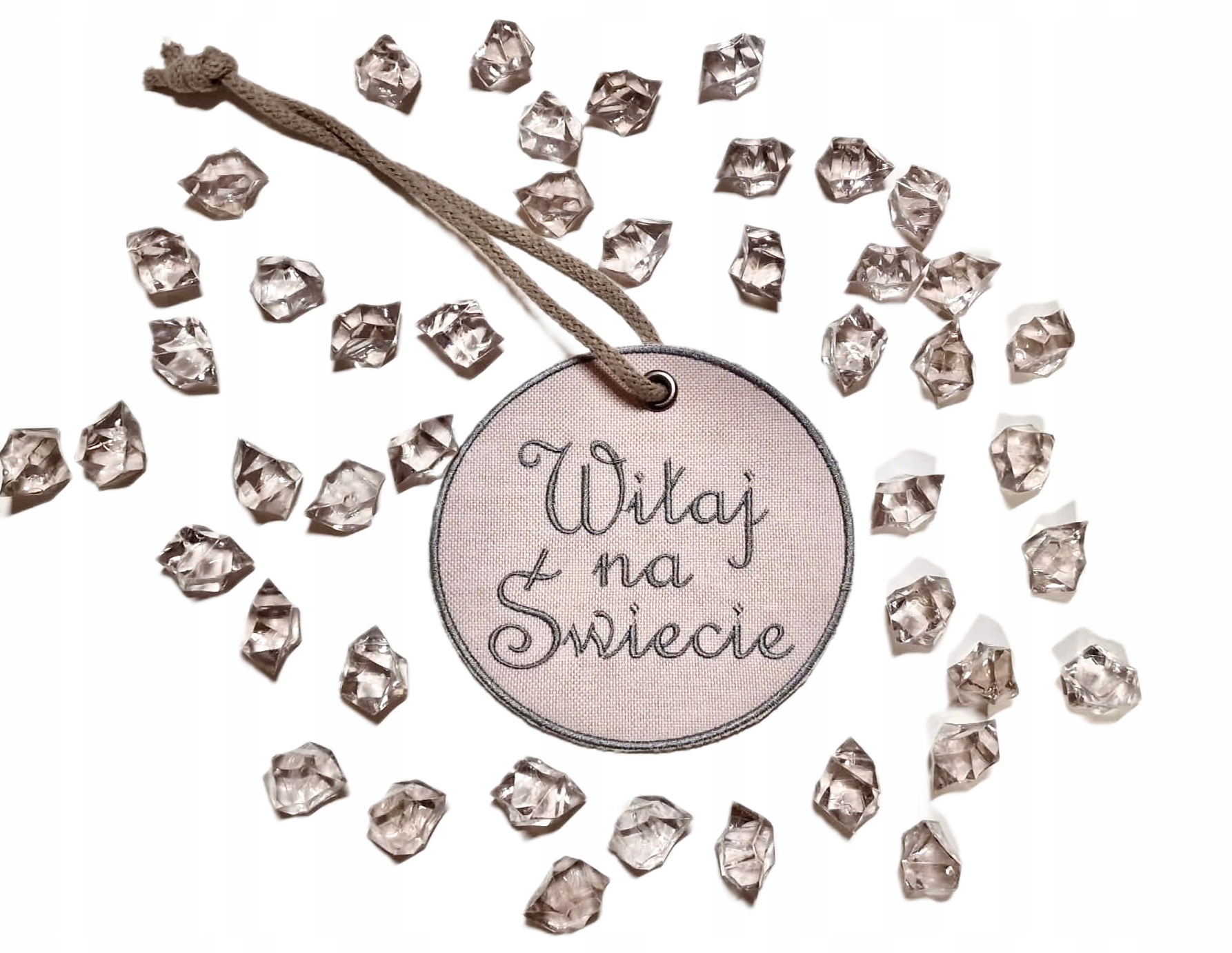 - Вышитая пластинка, бирка из ткани OXFORD - цвета на выбор. «Добро пожаловать в мир»
