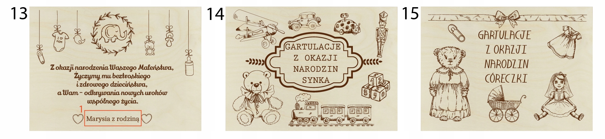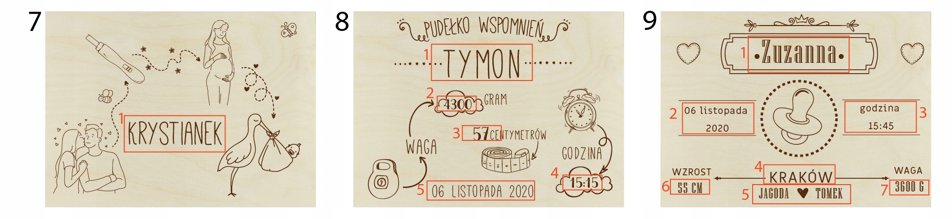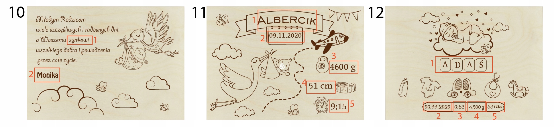 После совершения покупки не забудьте отправить информацию о выбранном рисунке, данные, необходимые для персонализации, а также номера выбранных мишек (интерьерные этикетки). Место, которое подлежит изменению, отмечено красной рамкой.