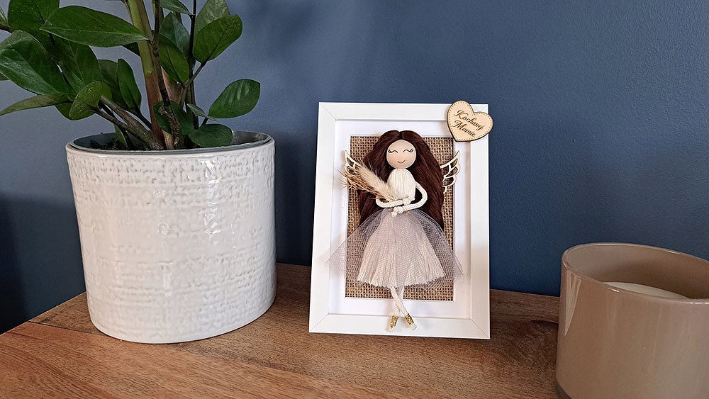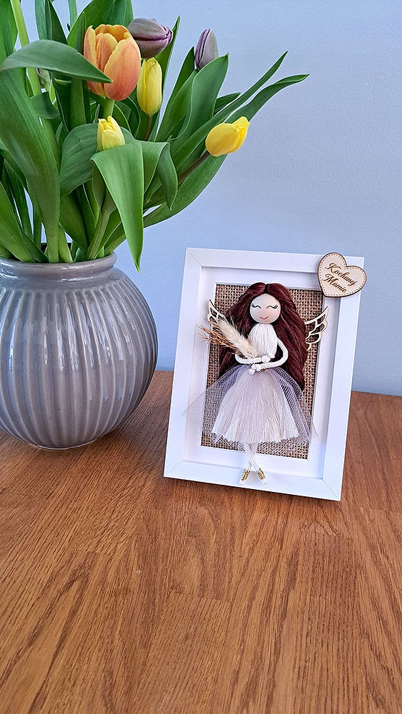 Макраме в фоторамке, девочке с крыльями ангела, подарок на день матери, день рождения, именины