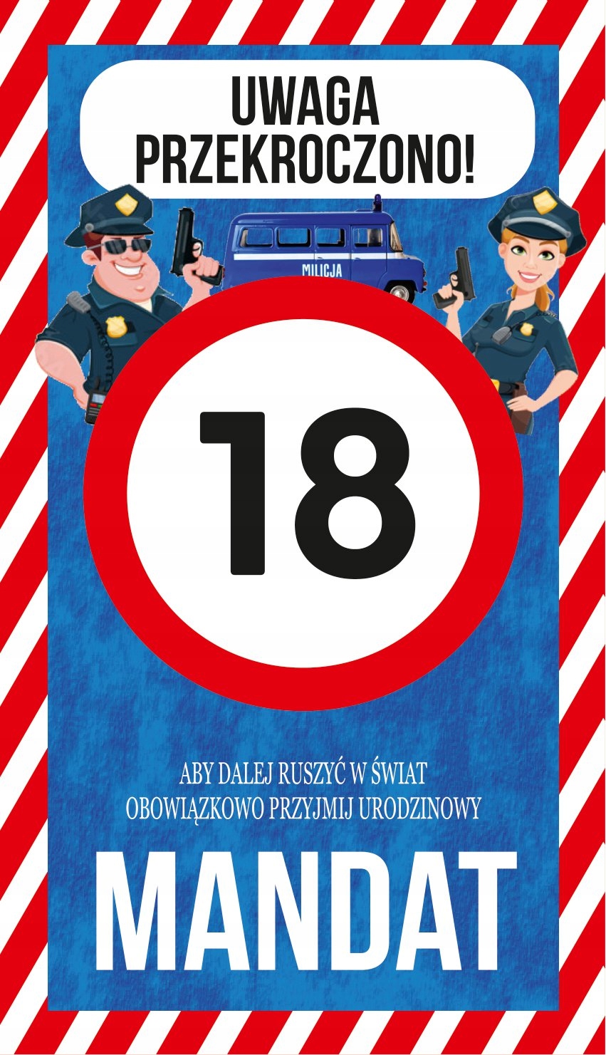 Смешная графика и текст «Внимание превысило 18! Чтобы продолжить переезжать в мир, принять билет на день рождения». На обратной стороне карты, но есть билет на руку.