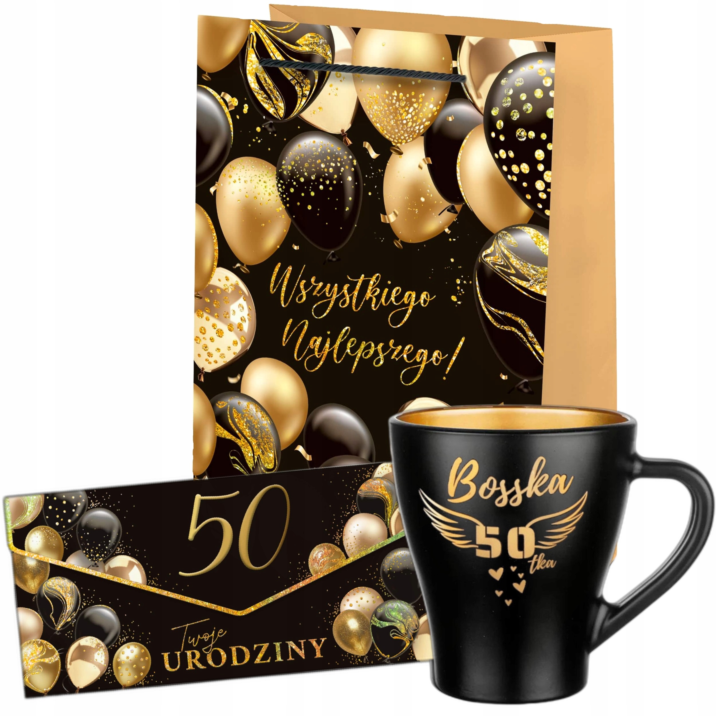 Пятьдесят день рождения - это золотая возможность отпраздновать! Сделайте подарок, который одинаково уникален. Этот полный набор - готовое решение, которое впечатляет элегантностью и последовательности. Роскошное сочетание глубокого черного и блестящего золота прекрасно подчеркивает звание этого прекрасного юбилея.
