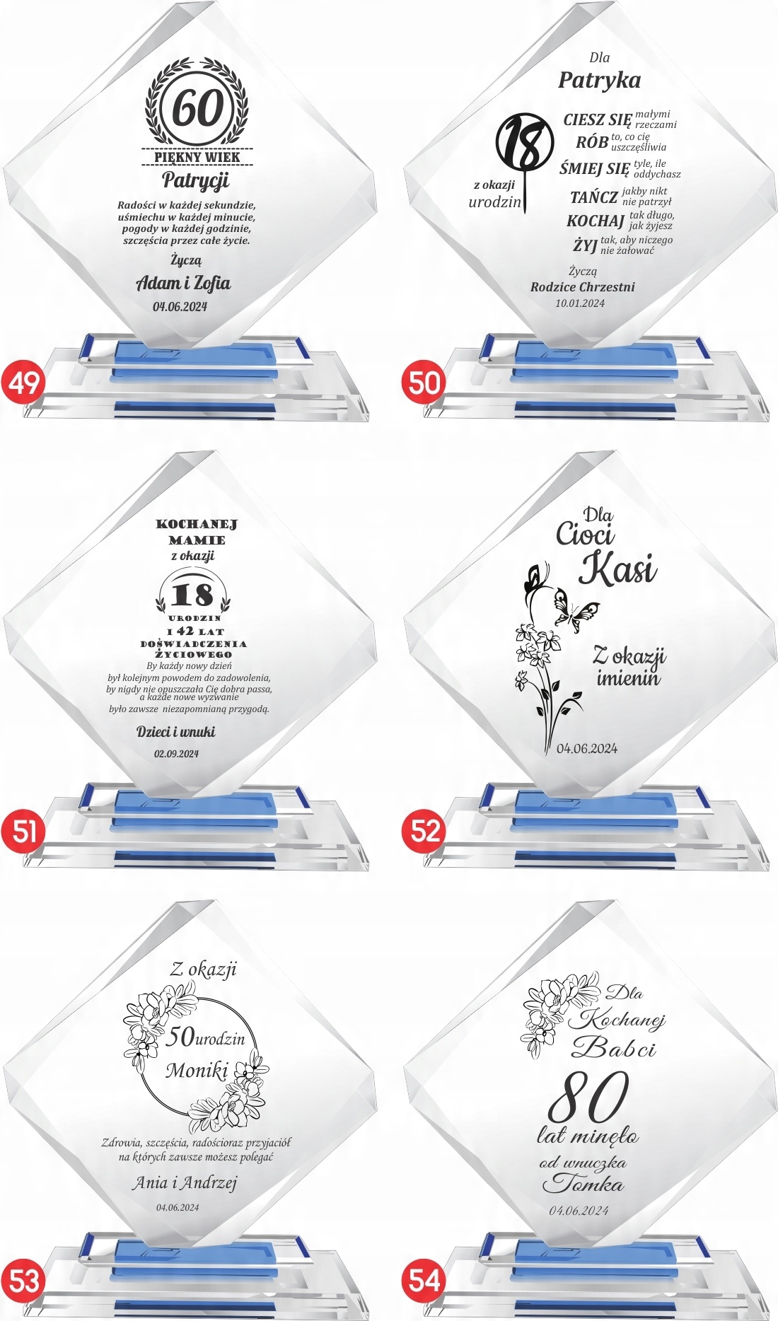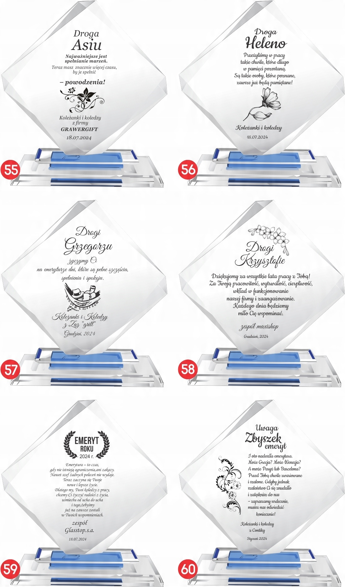 Статуэтки гравюры - это искусство передачи эмоций и настроений с помощью элегантных и долговечных объектов. В нашем предложении вы найдете уникальную Crystal Statuette , которую мы можем дополнительно персонализировать, поместив посвящение . Наша статуэтка - это удивительная композиция элегантности, в которой комбинация с гравированным посвящением лежит более глубоким значением, чем обычный дар. Это символ любви, благодарности и уважения, который прекрасно выражает ваши чувства уникальным образом.
