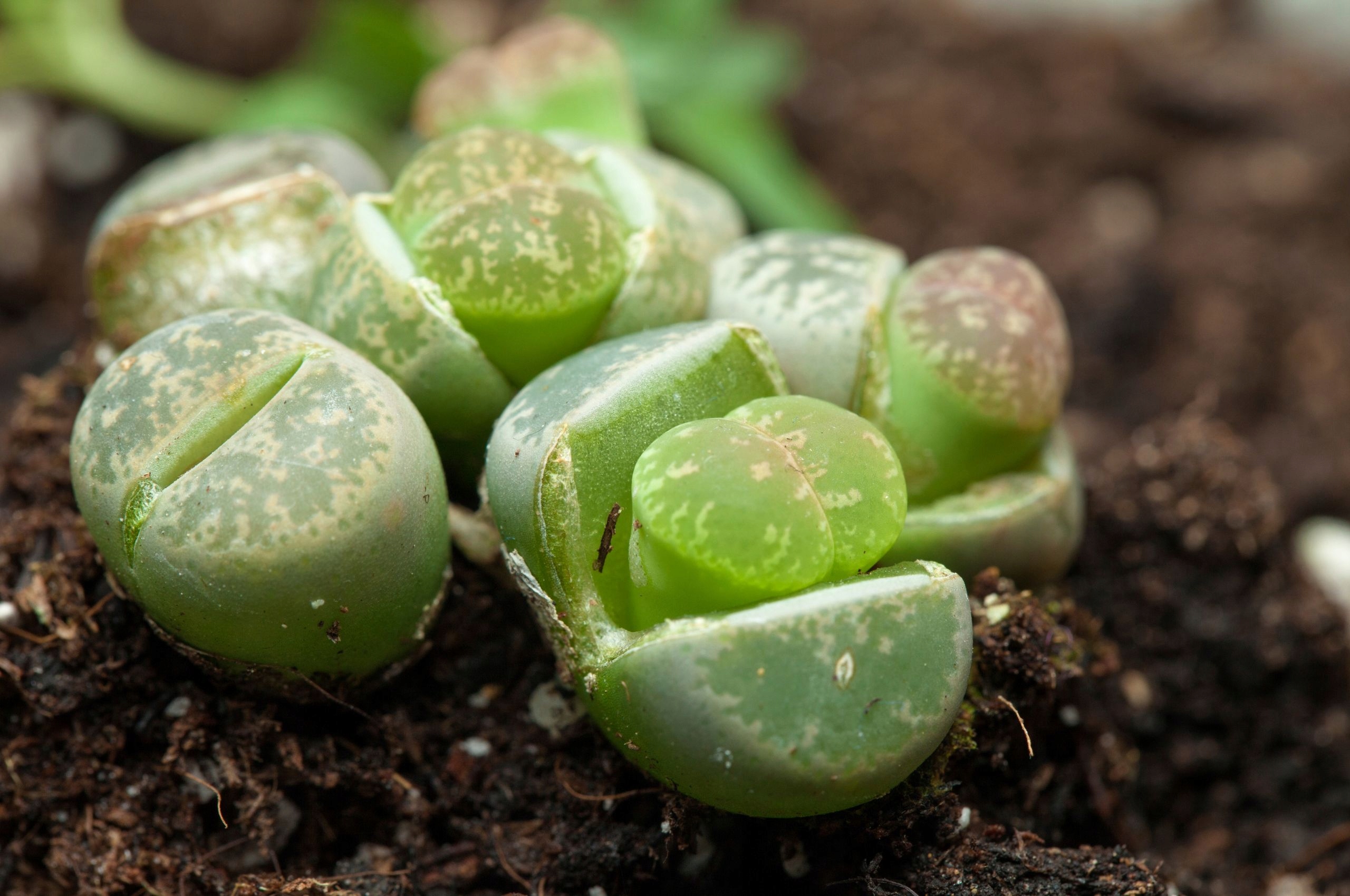 Живые камни — это очень простые в выращивании суккуленты, которые неподготовленному глазу очень напоминают лежащую гальку. Они могут иметь различные узоры и цвета, но общей чертой всех литопсов являются два запасающих воду листа, между которыми ранней осенью вырастает красивый цветок. Взрослые литопсы нуждаются в поливе только раз в несколько недель, и для их роста не требуется яркое солнце, поэтому они идеально подходят для интригующего украшения любой комнаты.