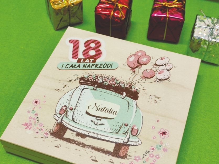 деревянная и очень эффективная денежная коробка с печатными пожеланиями - отличный подарок для празднования 18 -летия.