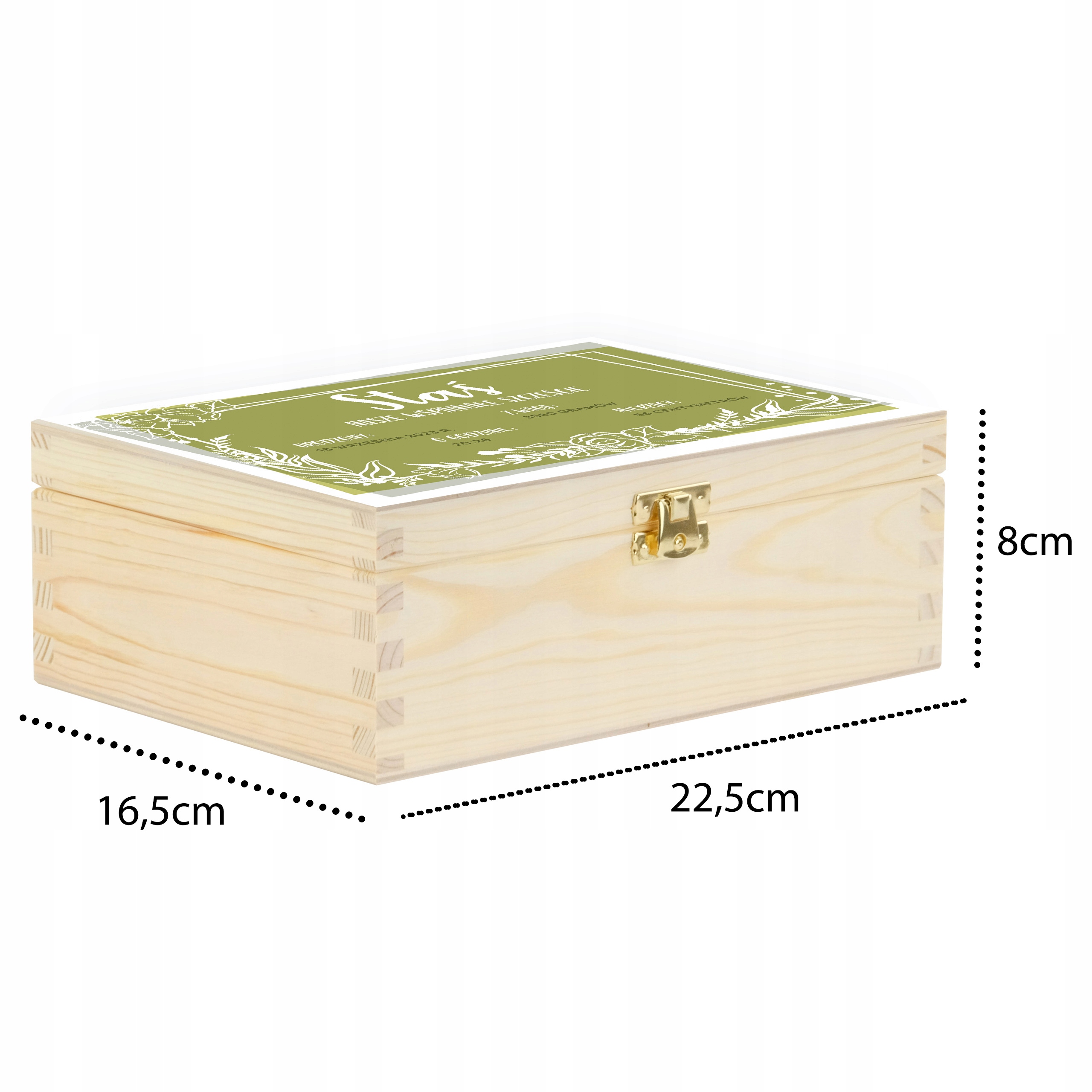 - Размеры деревянной коробки 16,5 х 22,5 х 8 см,
