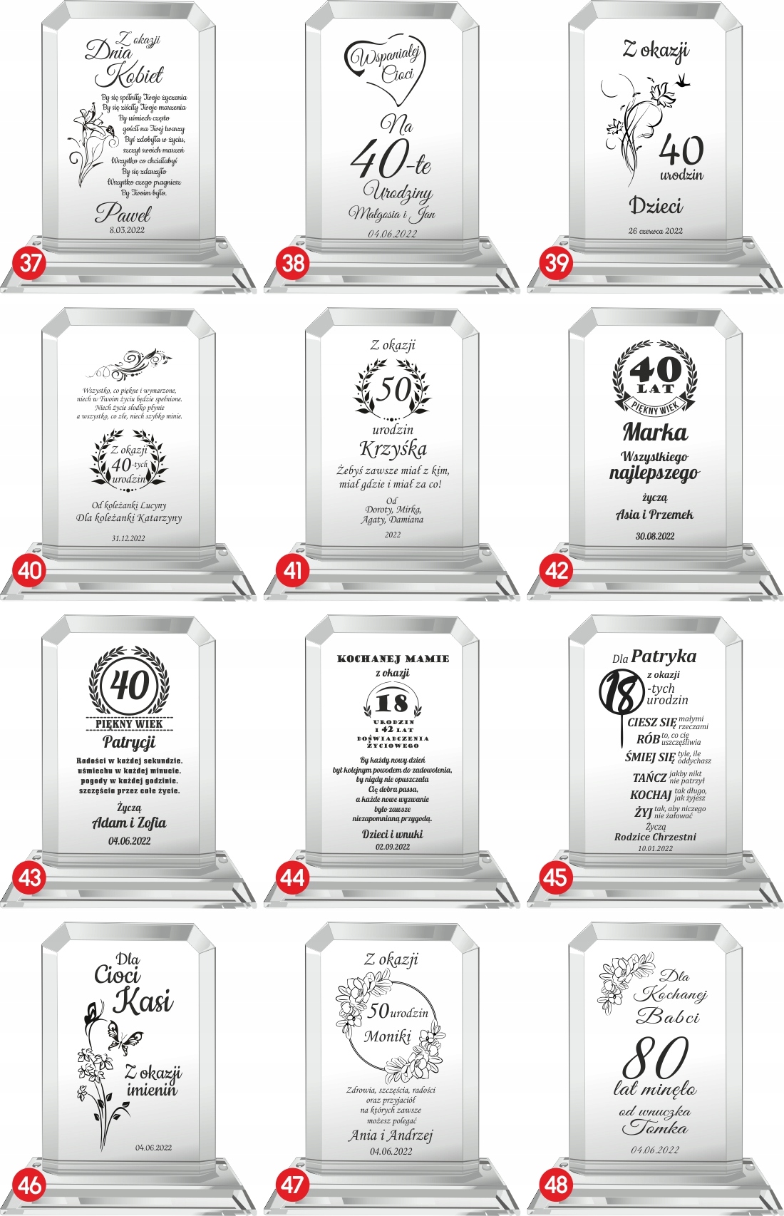 В случае не адаптации к указанному нами шаблоном мы не несем ответственности за ошибки в гравированной гравировке. Тексты и варианты могут модифицировать по своему усмотрению (тексты, отличные от наших вариантов, должны быть переписаны на компьютере и отправлены нам, например, в ноутбуке). Числа годовщины являются примерами, которые можно изменить. Тексты, отправленные в виде скриншотов или фотографий, не будут предписаны. должен быть предоставлен предписанный текст. Замена сообщает, что продукты, изготовленные из стекла, могут содержать небольшие пузырьки воздуха и царапать их поверхность в результате процесса их производства.